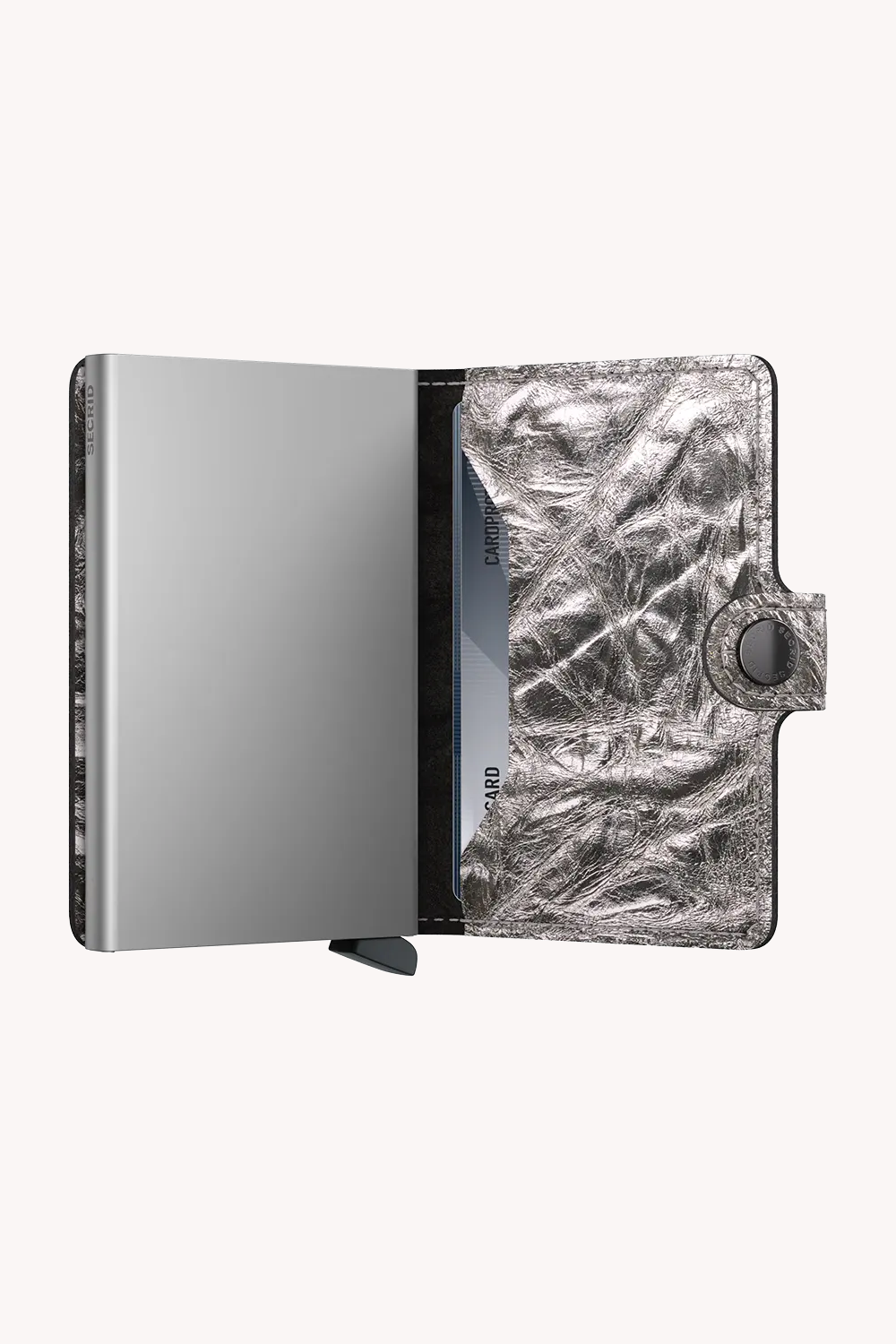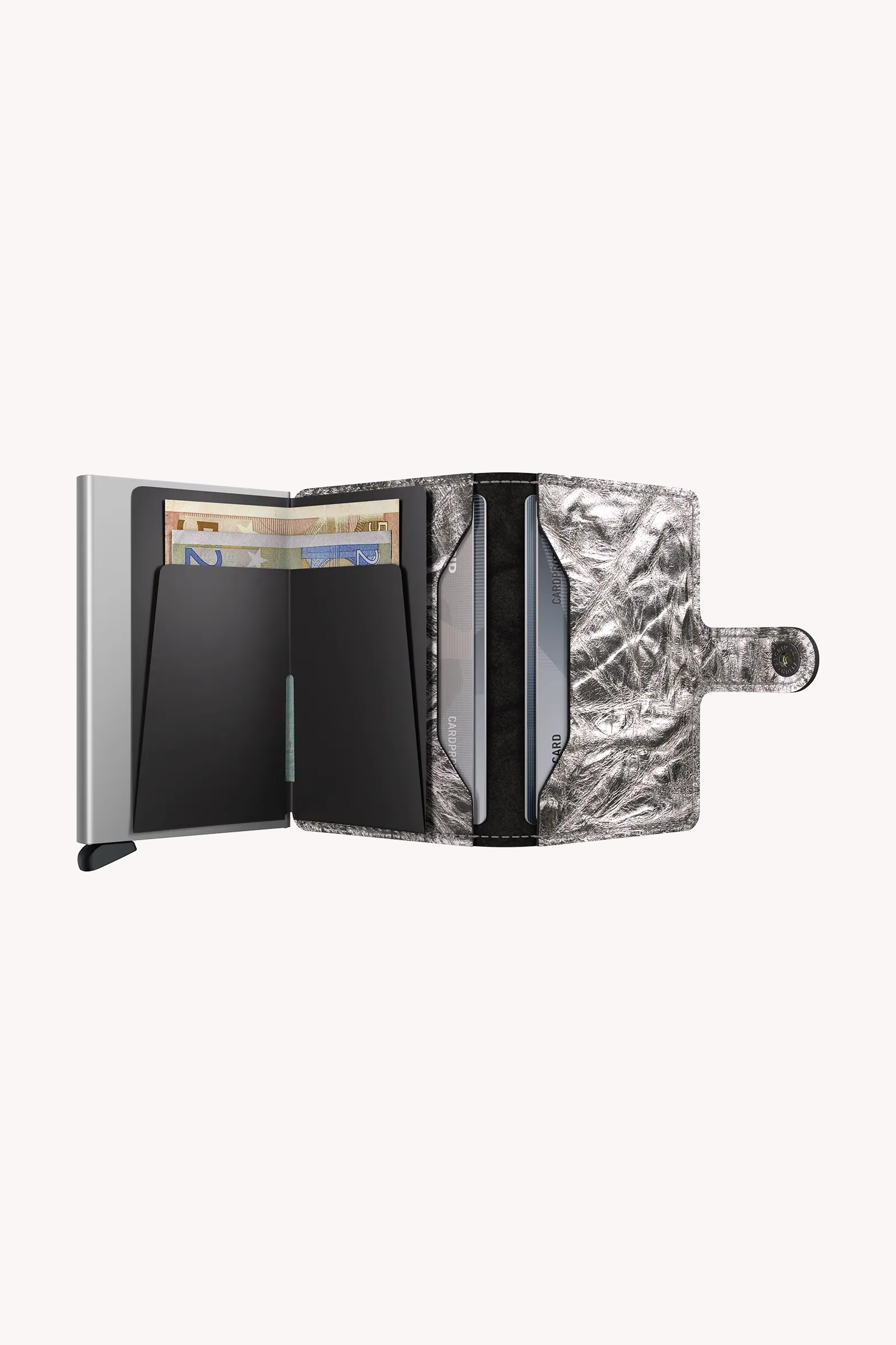 Small in size and surprisingly large in storage capacity, the Miniwallet combines the best of both worlds. The exterior holds banknotes, receipt and cards, while the aluminium Cardprotector allows you to slide out cards with one simple motion and protects them from bending, breaking and unwanted wireless communication.