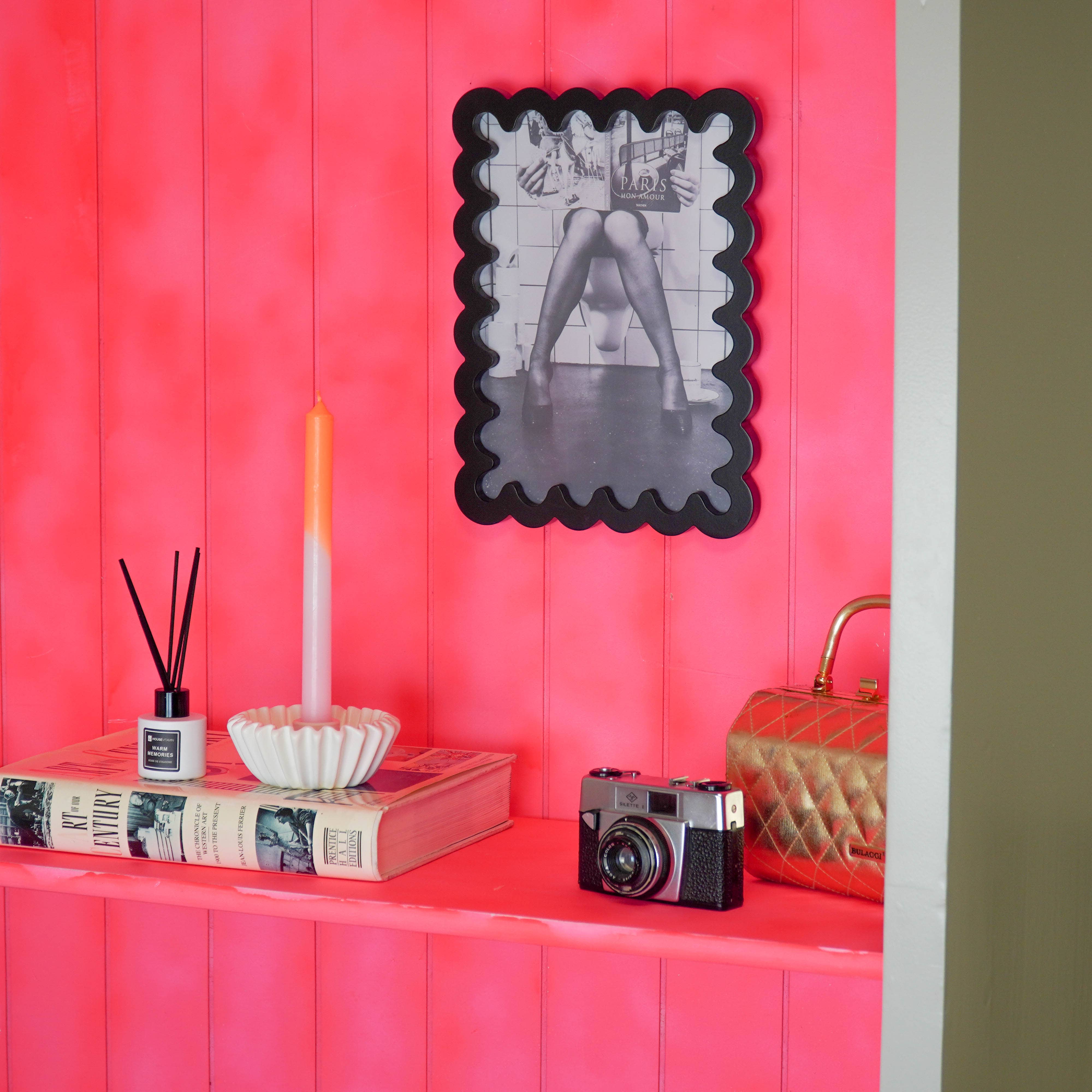 Display your favorite photos and prints in style with this black wavy-edge picture frame. The playful design and sleek finish bring a modern touch to any room, while the durable MDF construction keeps your artwork protected. At 24 x 33 cm, it's the perfect size for photos, posters, and art prints. Lightweight and easy to hang, this frame works beautifully in contemporary or creative spaces.