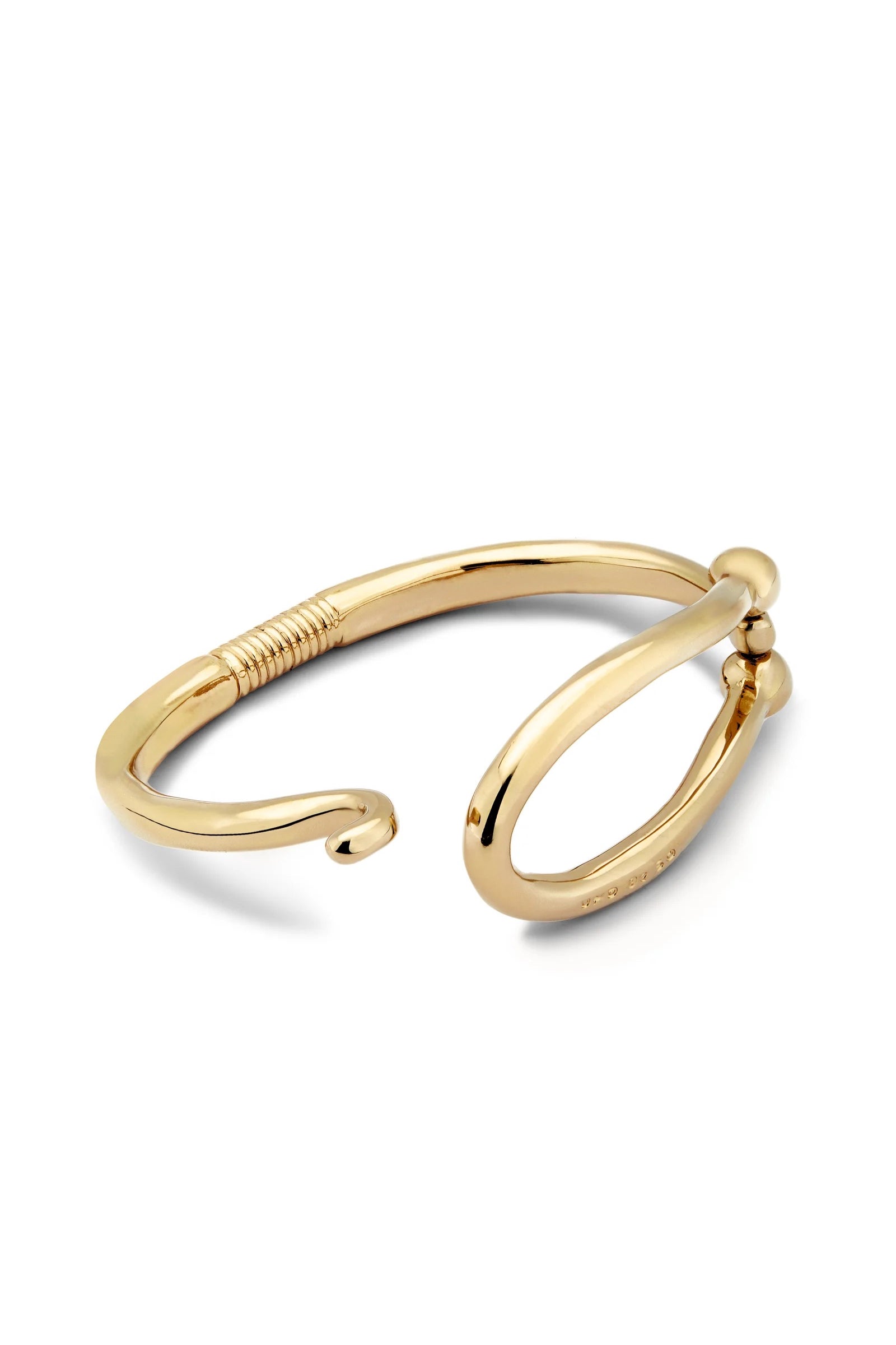 Rigid 18K gold-plated metal alloy bracelet with large link and inner spring. 100% handcrafted in Spain, achieving a unique design finish.