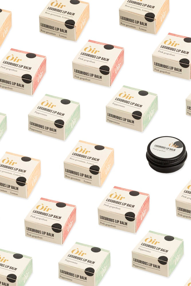 Our luxurious lip balms are made with a base of cocoa butter, shea butter, apricot kernel oil and castor oil. They are all bound together using candelilla wax, which is vegan. And then finished off with a hint of essential oil to give one of three scent profiles: