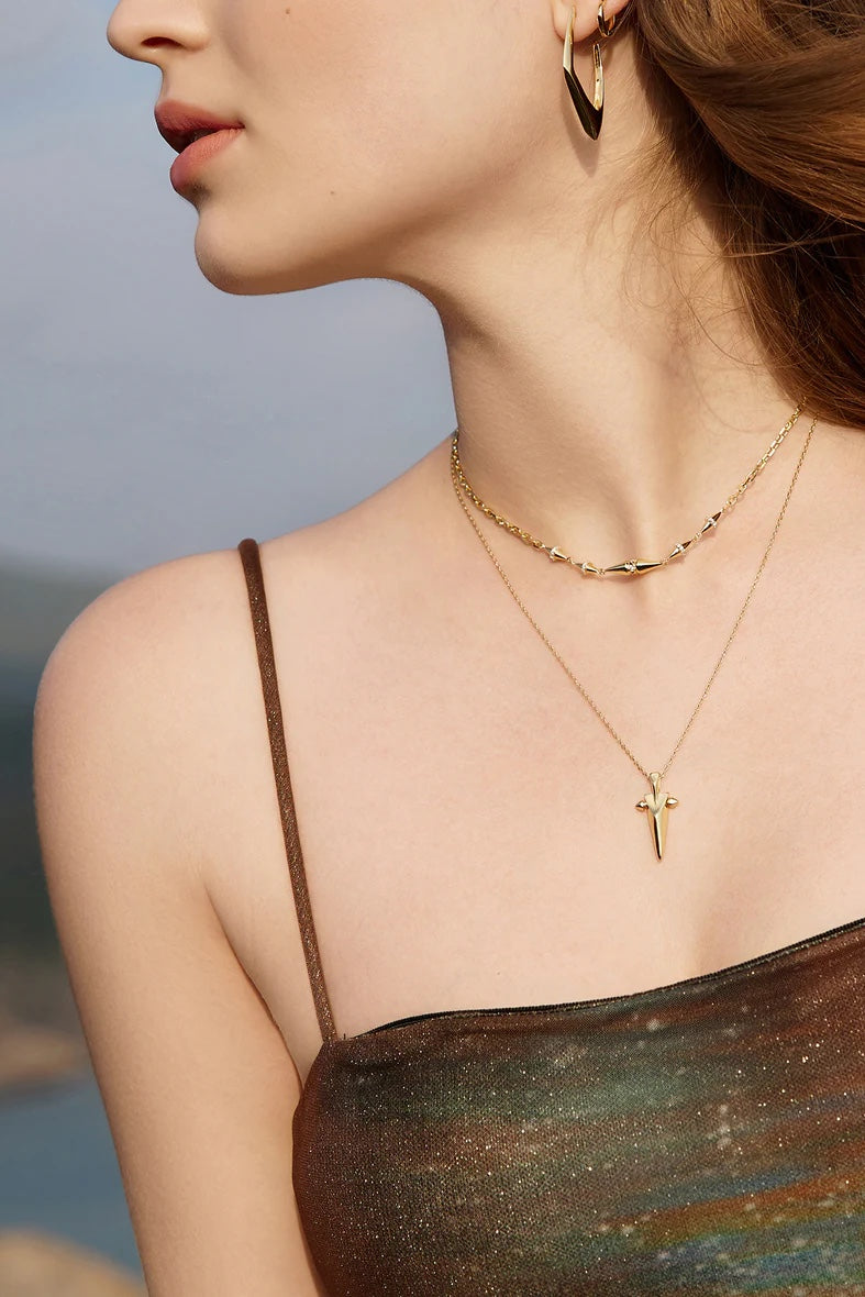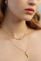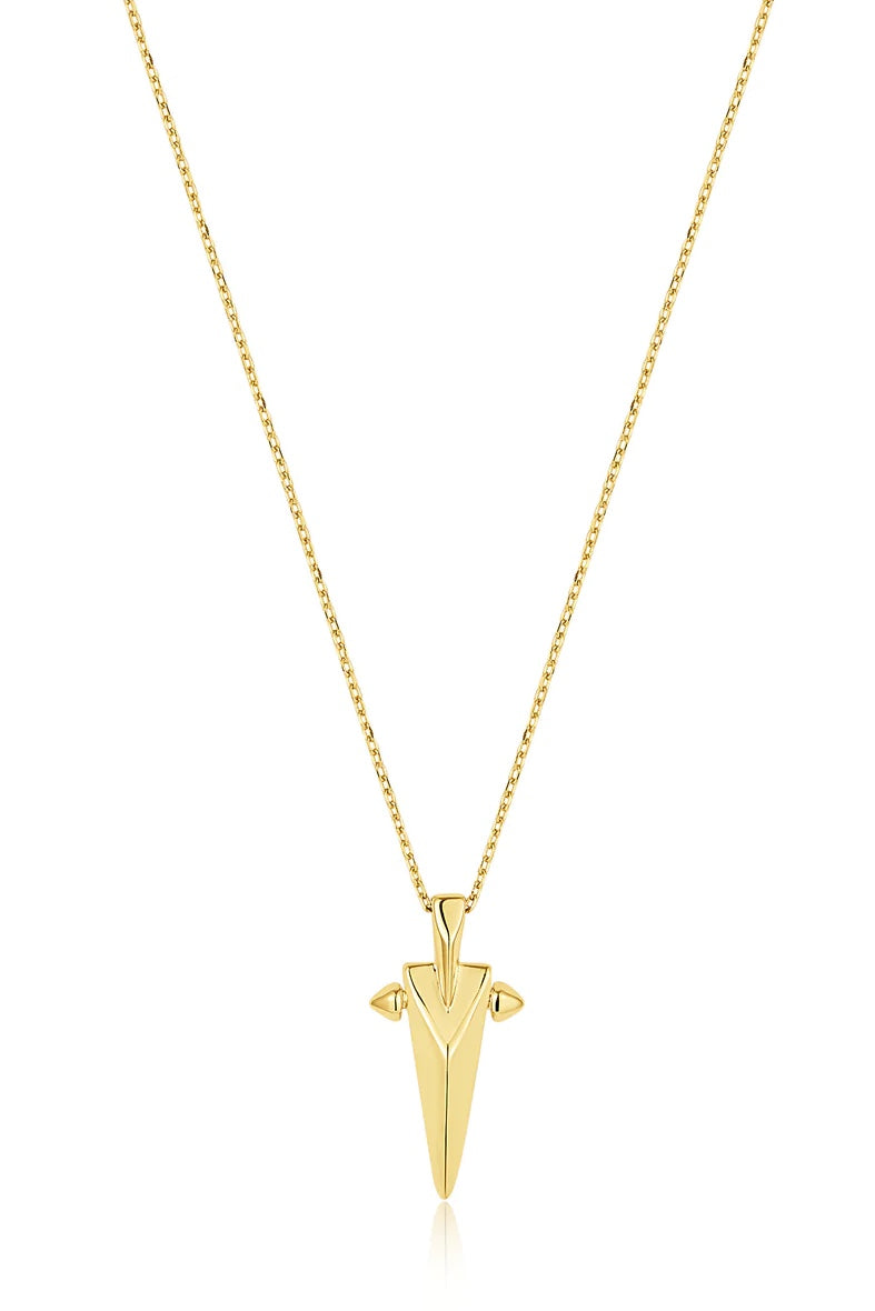 Make a statement with this bold yet elegant pendant necklace, finished with sleek, punk-inspired black detailing. Set on a 14kt gold-plated sterling silver chain, the chic gold disc pendant is finished with a single sparkling cubic zirconia stone and encircled with sparkling point details and cool black edging.