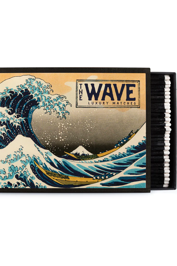 Indulge in luxury and set the perfect mood with the Giant Matchbox | The Wave. Handmade in India, this exquisite matchbox contains 150 long black matches with white tips, measuring 280mm. Its elegant design and dimensions of 300 x 190 x 60mm make it a must-have for any sophisticated home.
