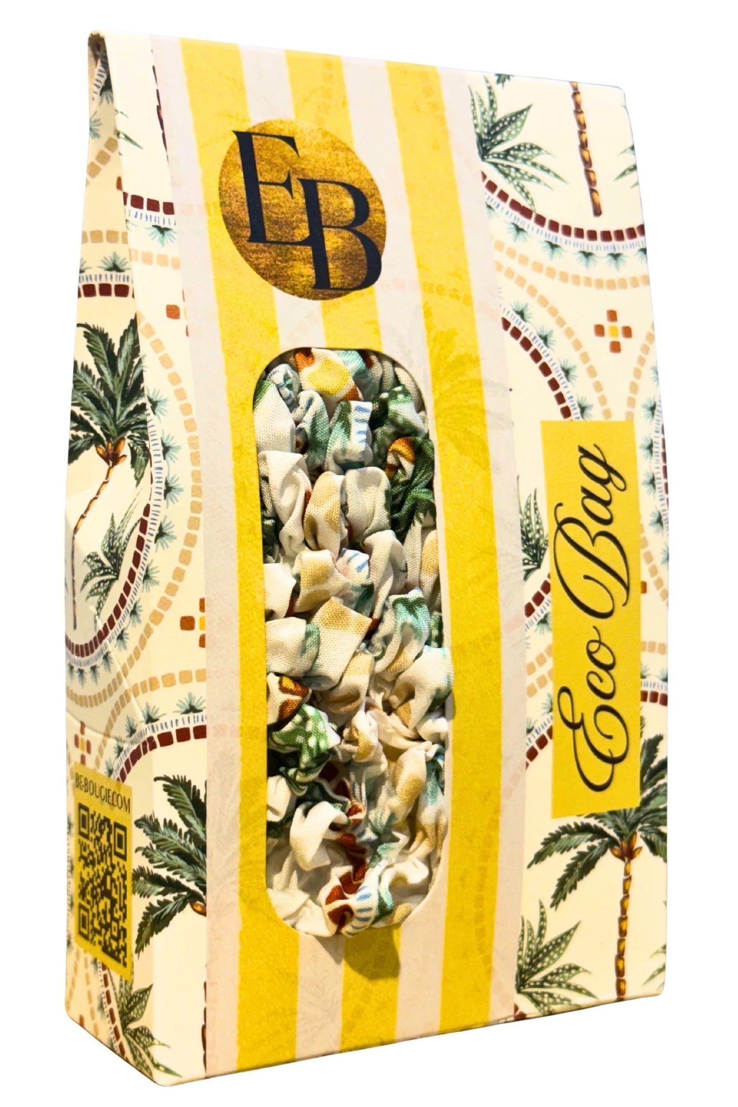 This eco stretchy tote  shrinks  down after use, slipping effortlessly into your pocket, handbag, or backpack without having to fold. Full size 45cm x 50cm.