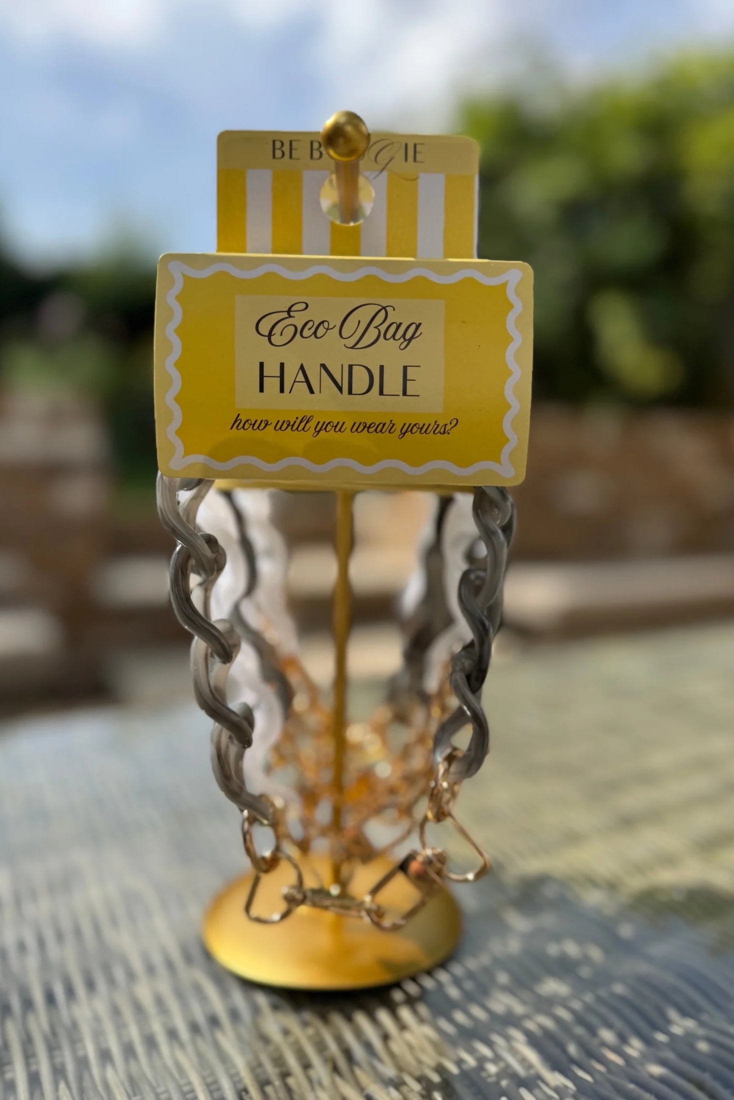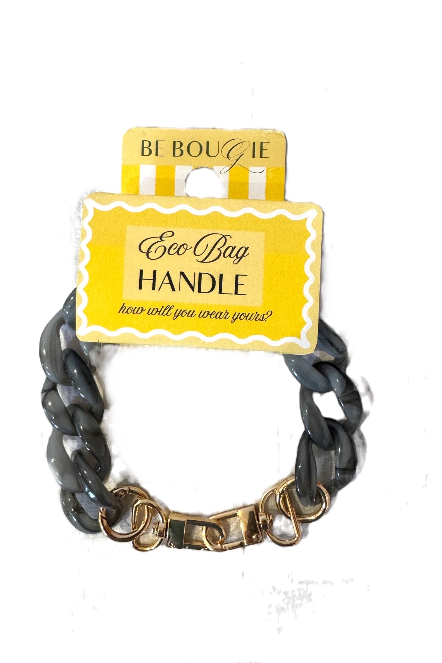 These interchangeable handles for be Bougie sustainable stretchy tote bags allow you to change the look of your bag, from day to evening, casual to formal, in a couple of clips!