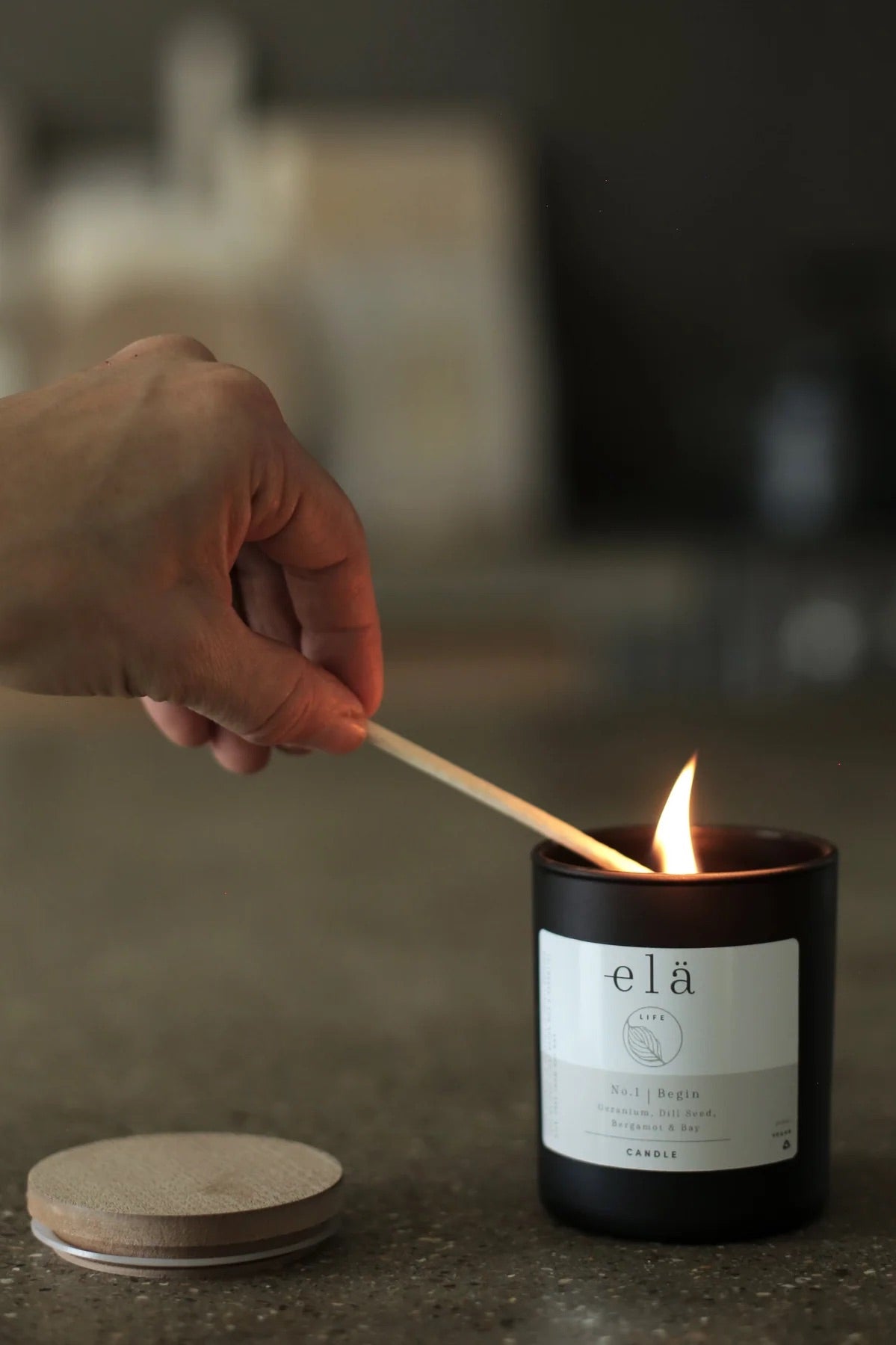 Our Begin No 1 Candle is handmade in the UK in small batches from 100% natural ingredients. Made using our aromatherapy blend, Begin No 1 and 100% natural wax. Begin is an uplifting and invigorating blend of Geranium, Dill Seed, Bay and Bergamot 100% Essential Oils.