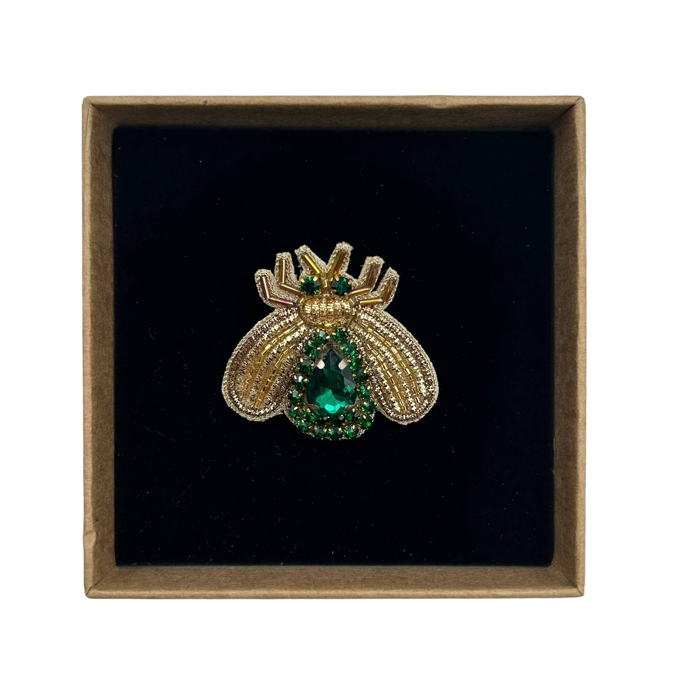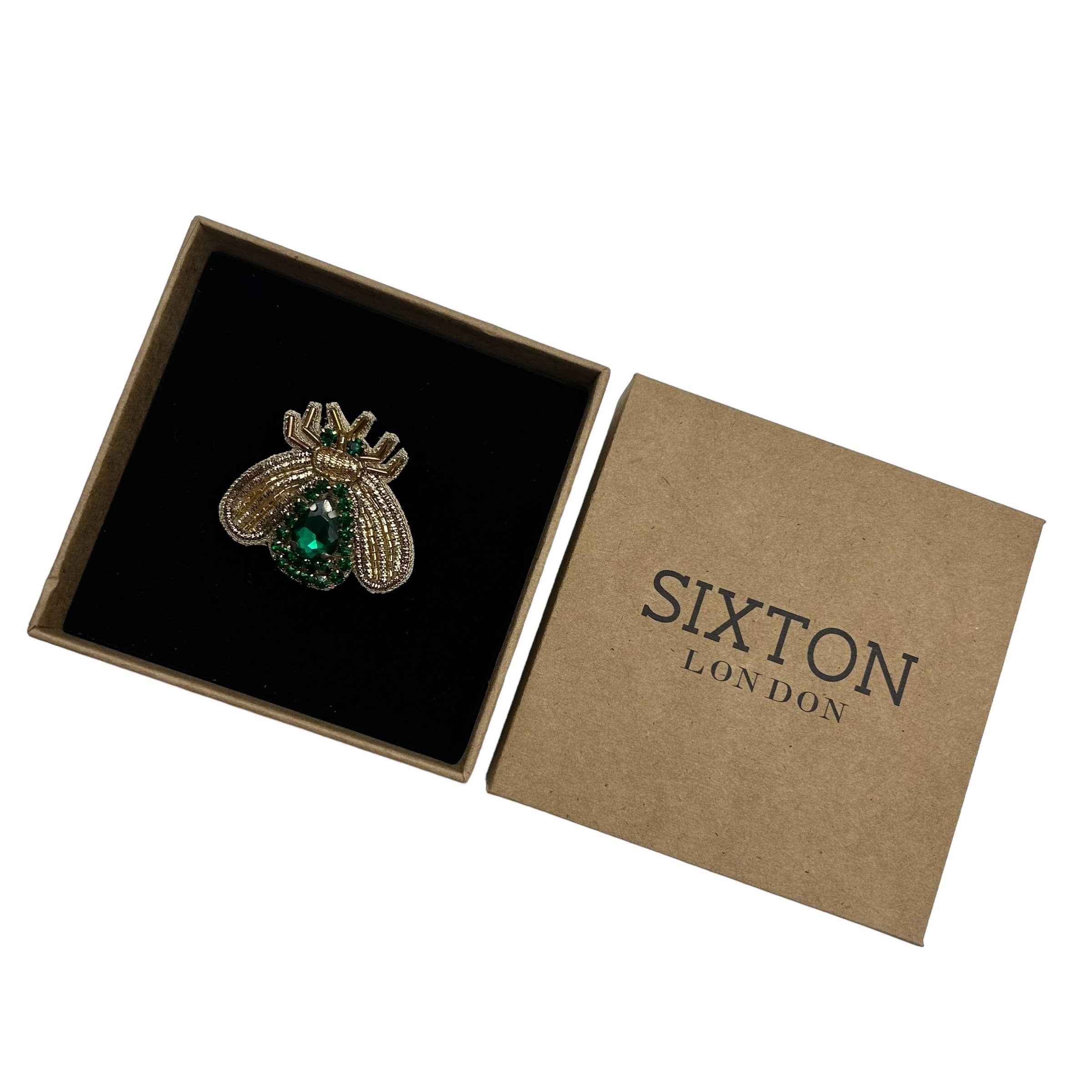 Add a touch of whimsy to any outfit with our Green Jewelled Insect Brooch. Hand-embroidered with sparkling gold thread, this 4cm wide pin will add a playful pop to your style. Each brooch comes in a recycled gift box, making it a perfect eco-friendly gift. Made in India, now available at an unbeatable price.