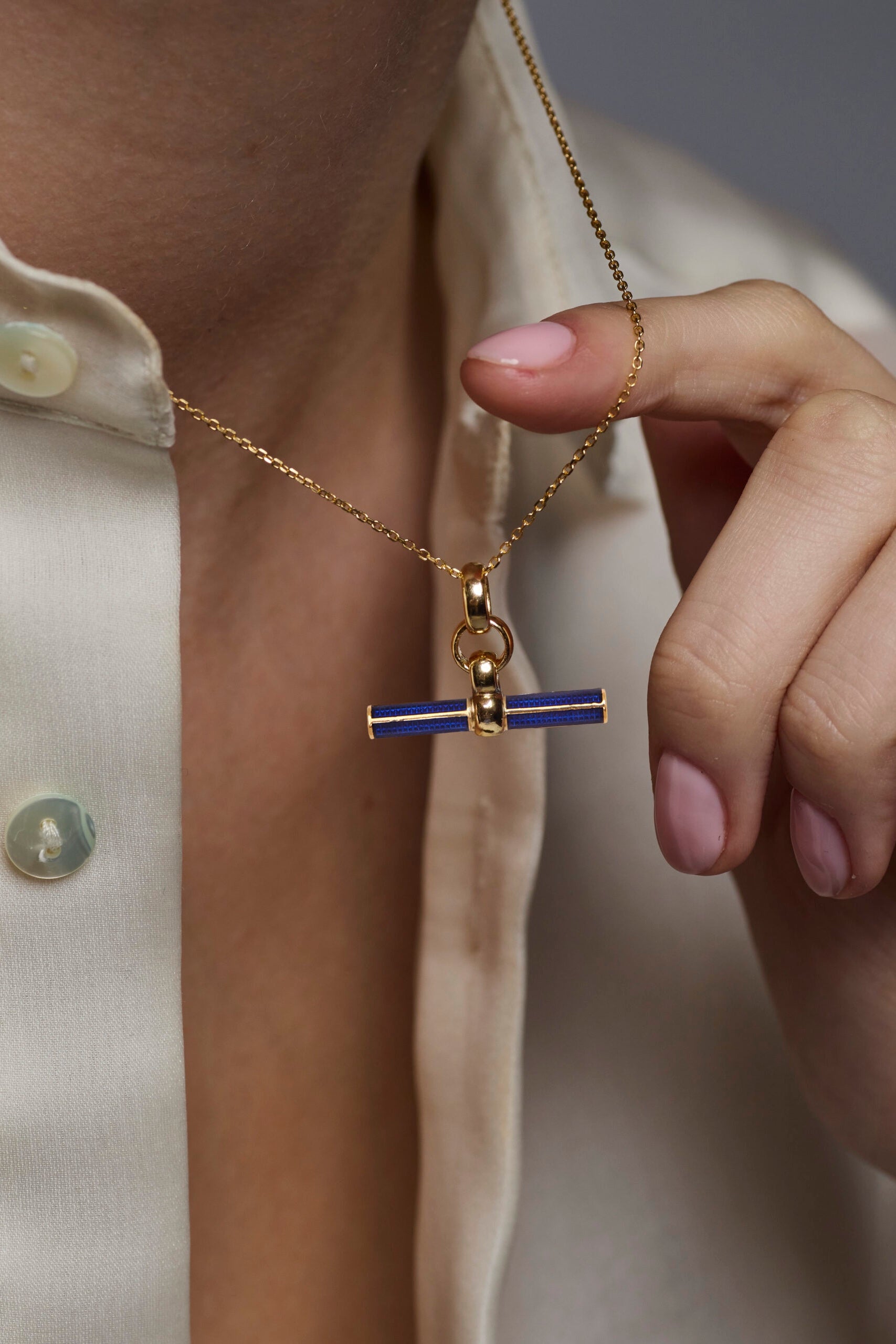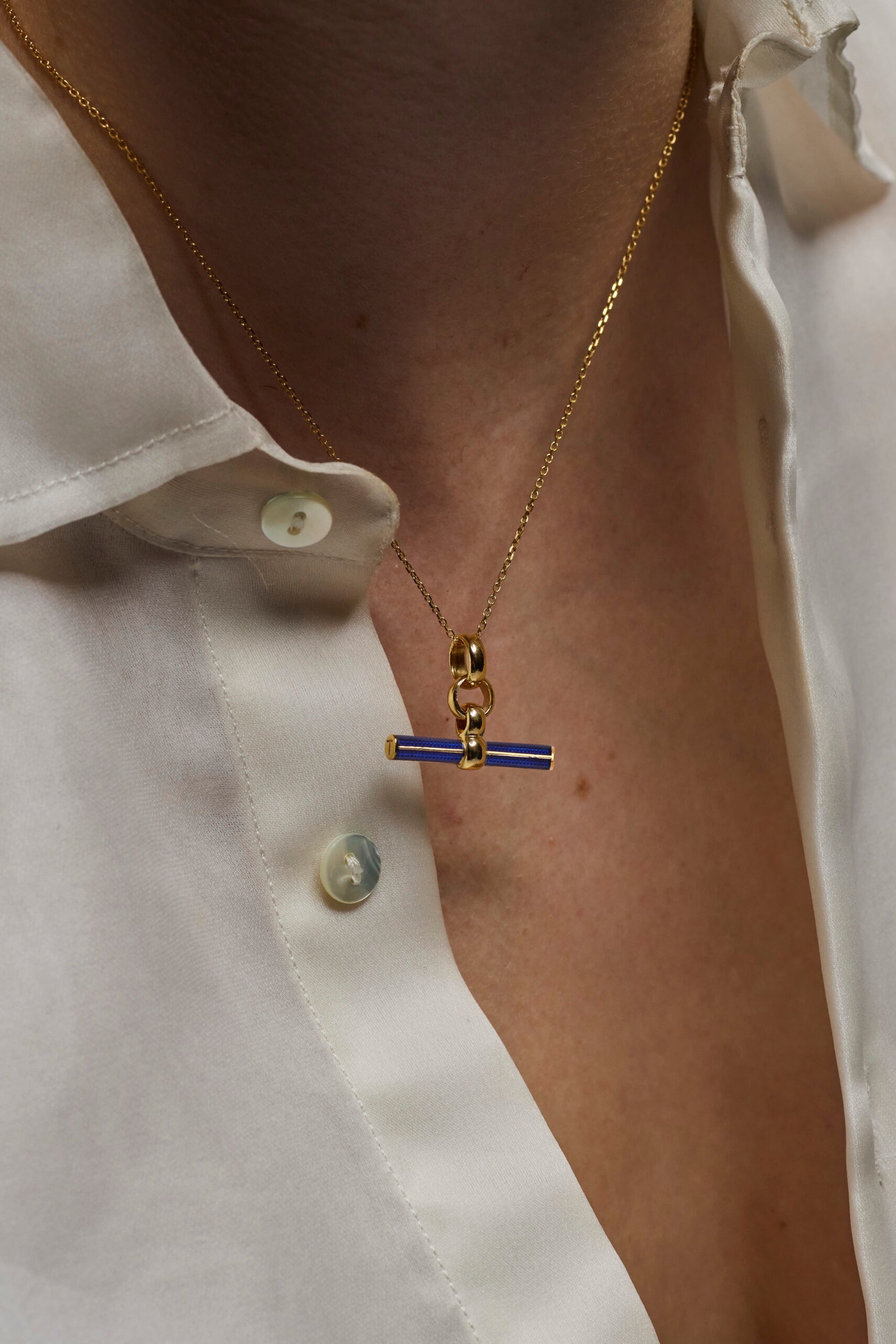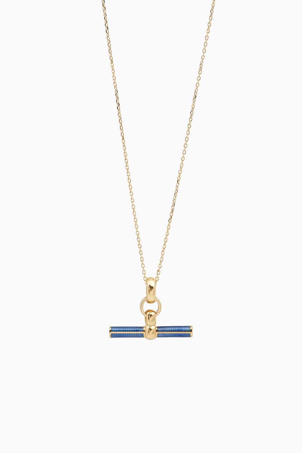 Enamelled Small Gold T-bar on Trace Chain | Navy