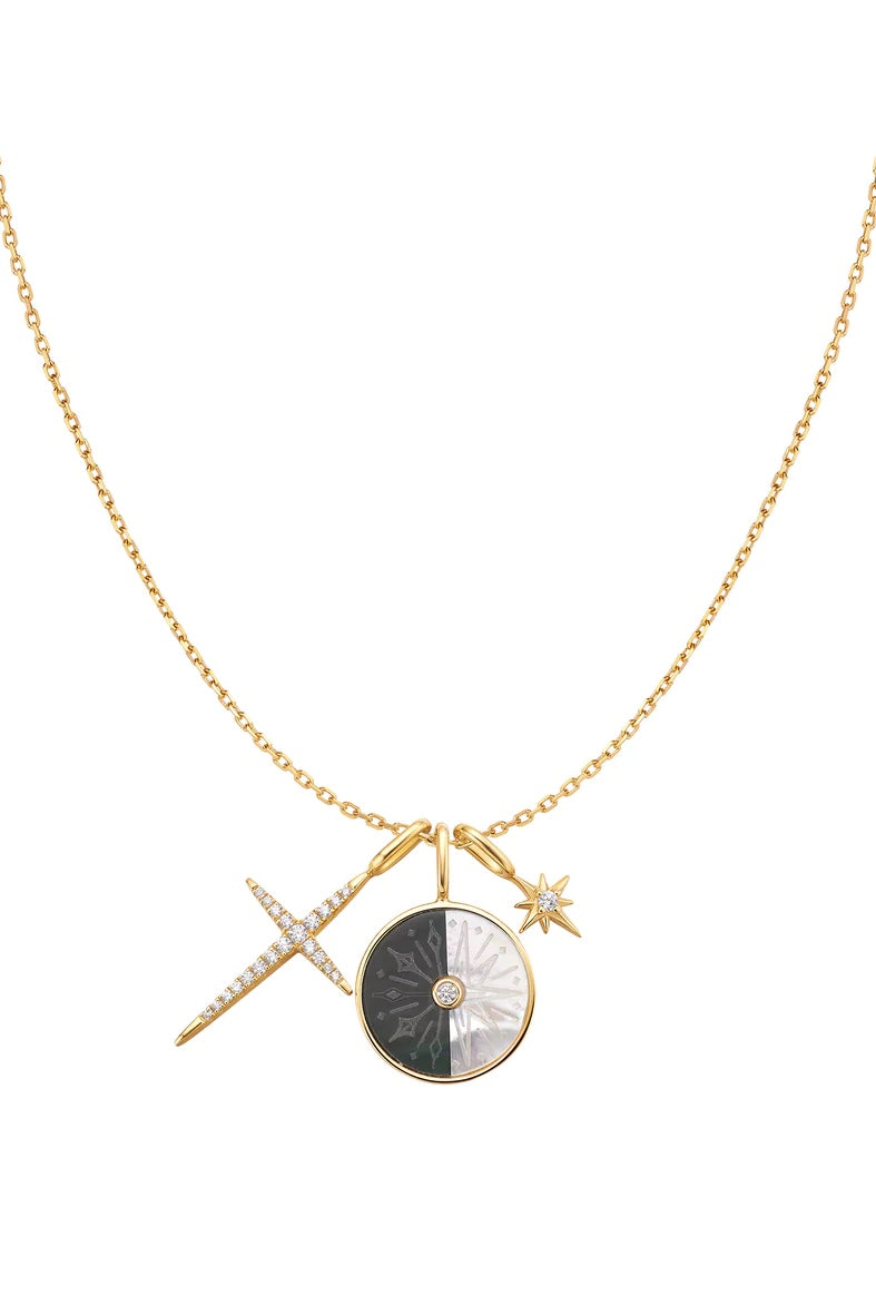 Make a statement with your jewellery with this chic, bohemian-inspired black and white charm, set on 14kt gold plated 925 sterling silver. Crafted using stunning mother of pearl and finished with a single sparkling cubic zirconia stone, the celestial-inspired charm is the perfect addition to any link chain necklace from our Pop Charms collection.