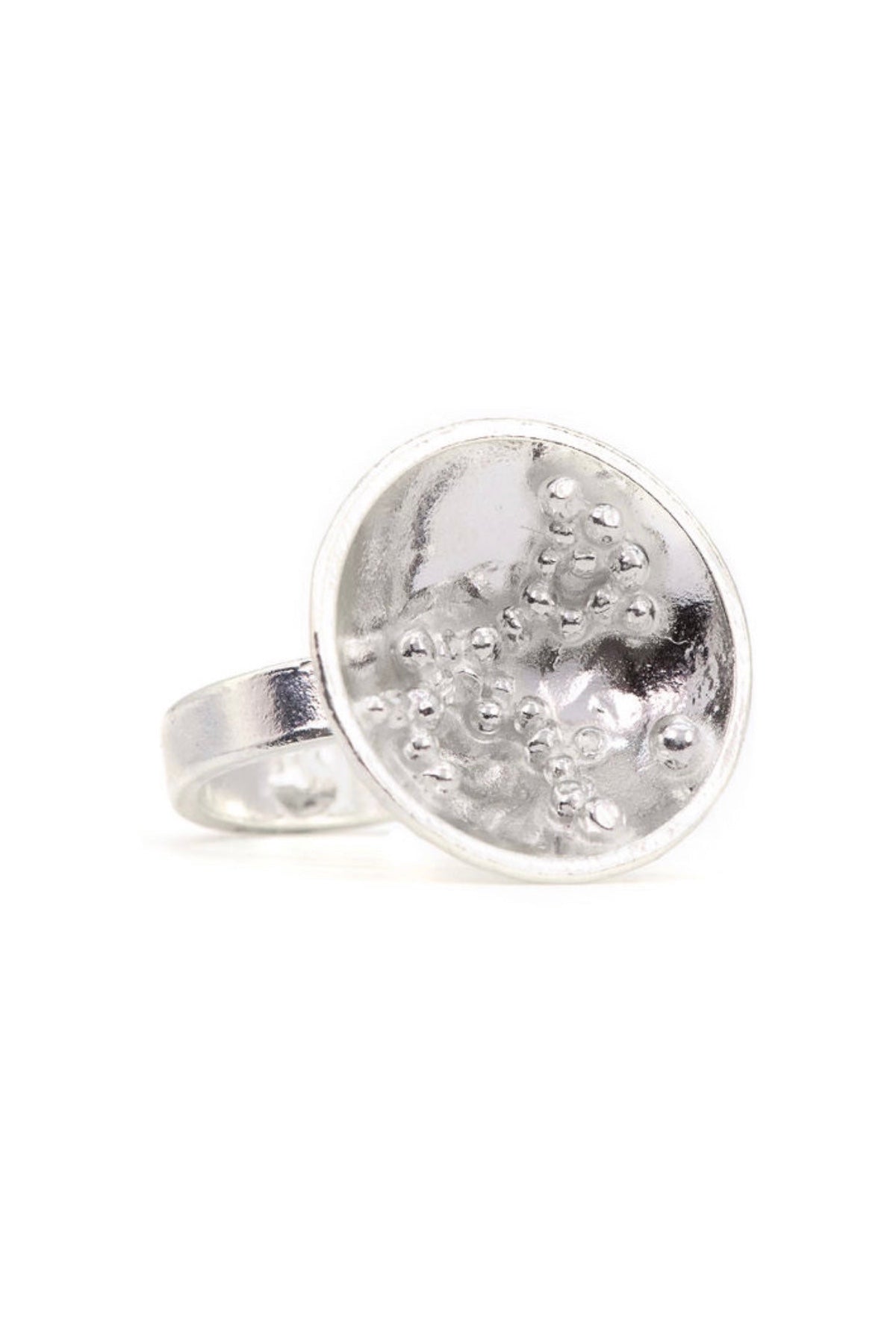 The intricate and eye-catching ring has been created in solid recycled sterling and finished with a granulation technique.