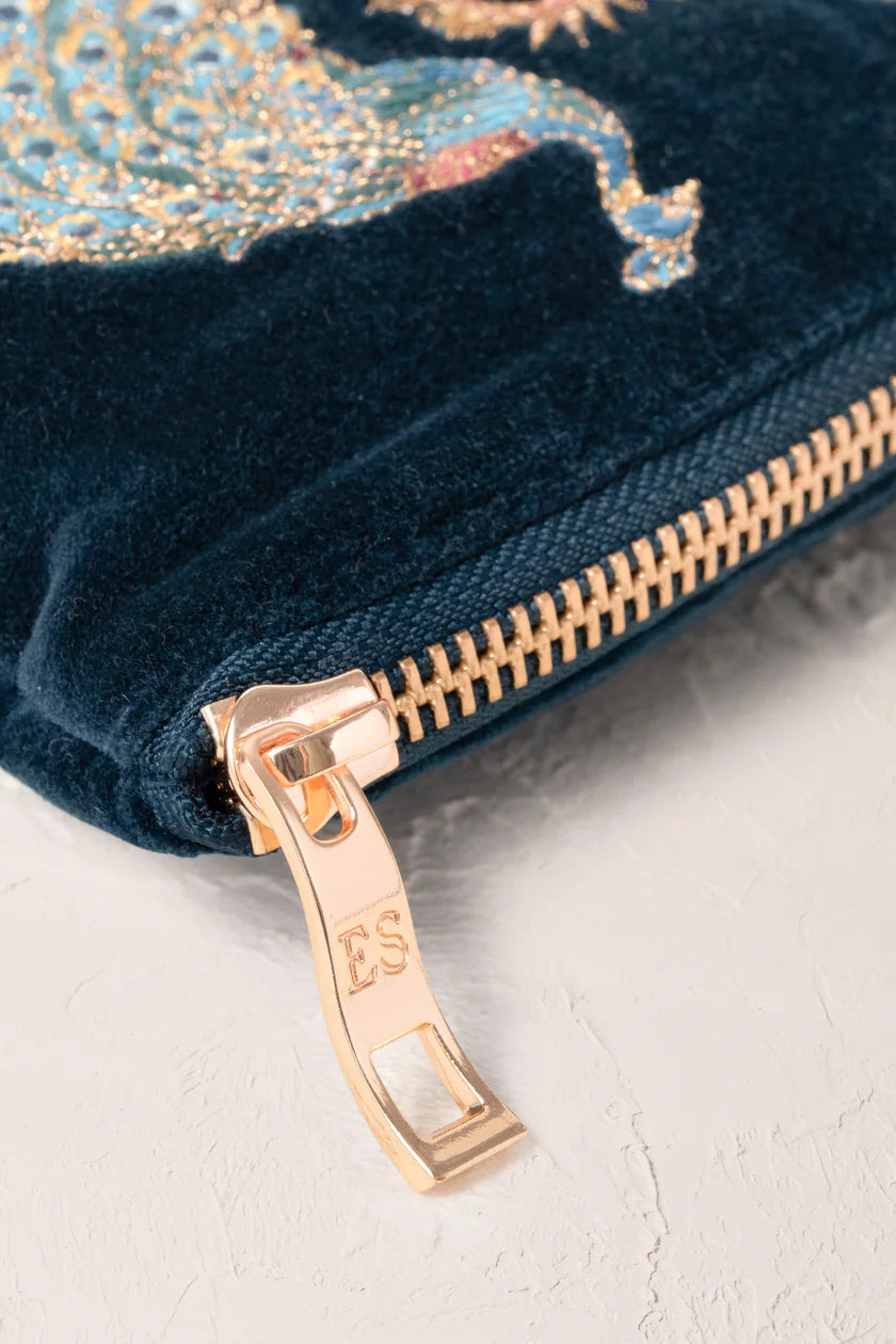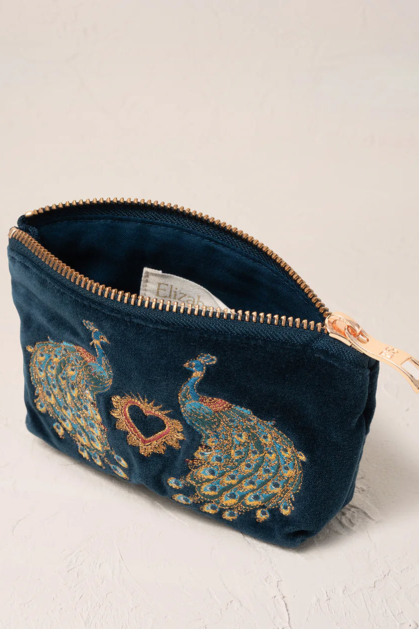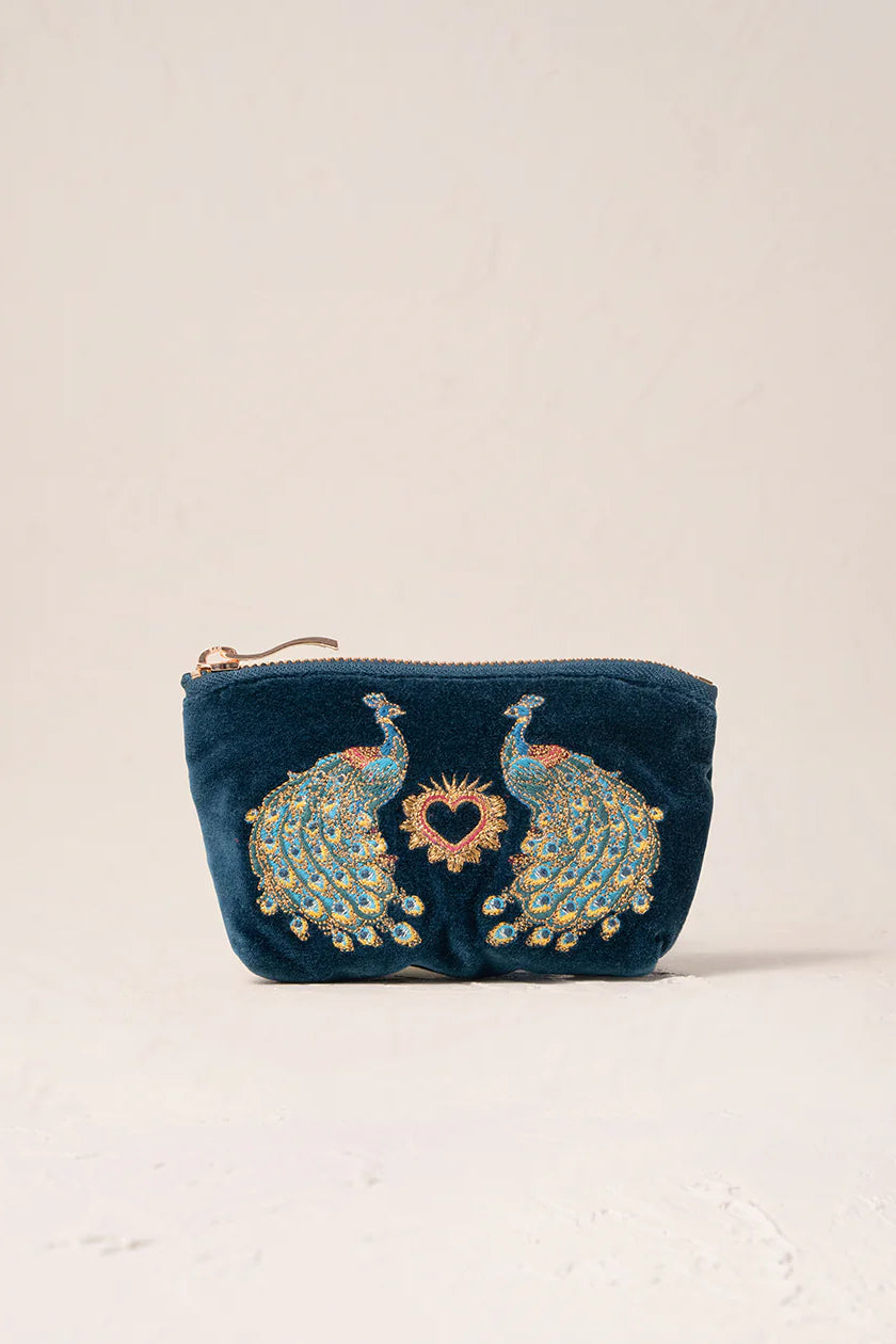 Ink Blue Velvet Coin Purse | Peacock Floral