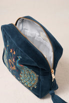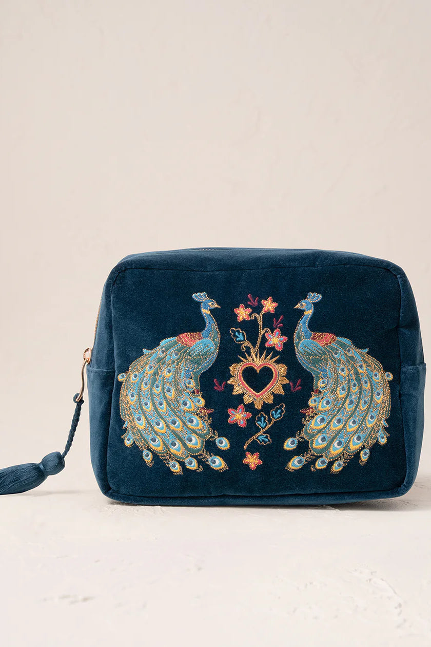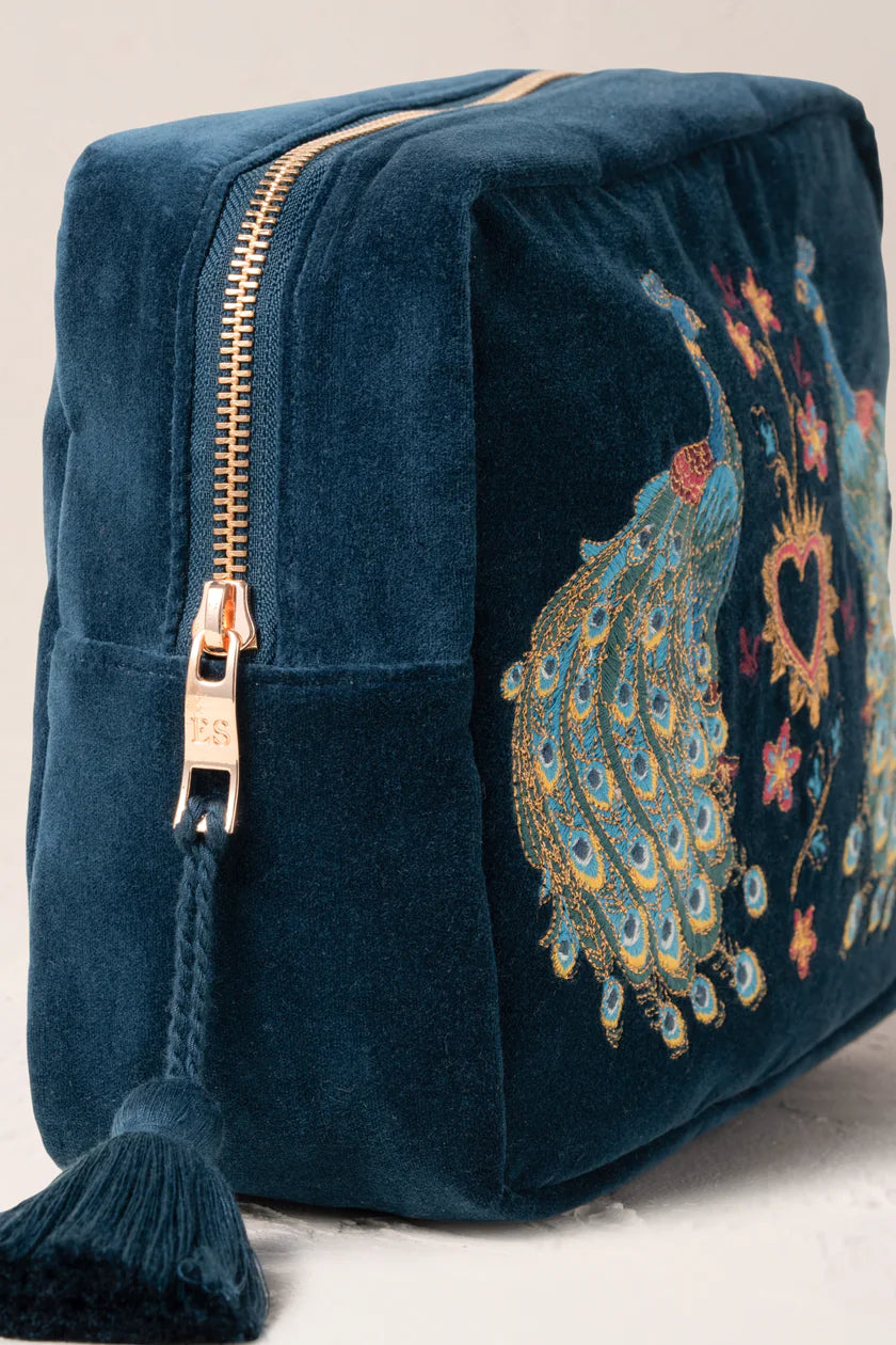 Ink Blue Velvet Wash Bag | Peacock Floral