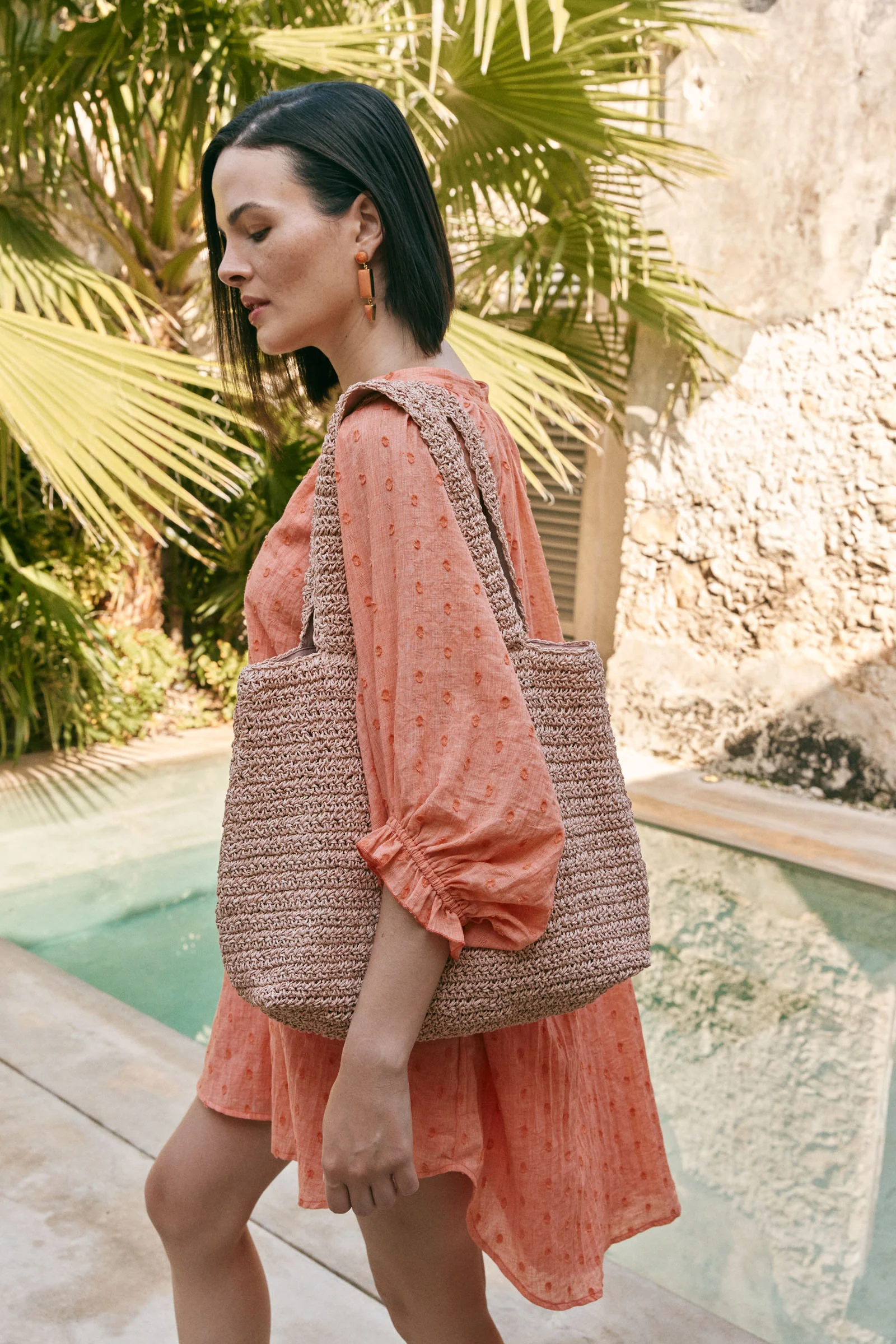 Get ready to take on all your summer adventures with the trusty Palme Bag by your side! Each woven carry-all is handcrafted with care, adding a special touch to your ensemble. With long shoulder straps and a spacious interior, you can comfortably carry large items like water bottles, smart tablets, or beach towels. Wherever you go, this bag has got you covered!