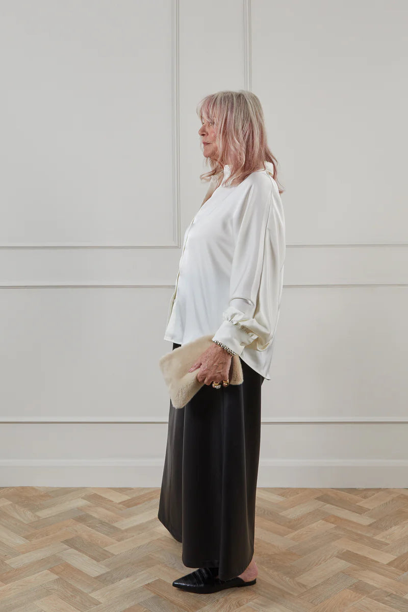 Get ready to make a statement with our Small Pouch Bag! With its beautiful flat fur faux fur and pleather lining, this bag is perfect for a night out. It even has a convenient leather strap for easy carrying.