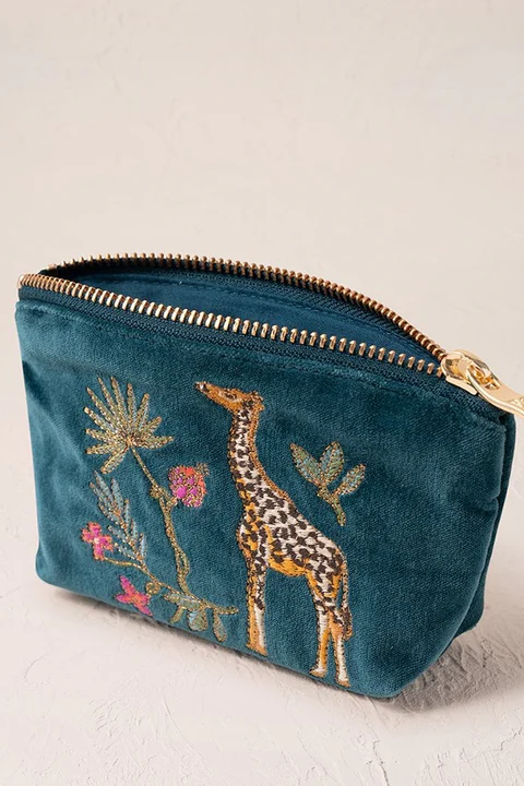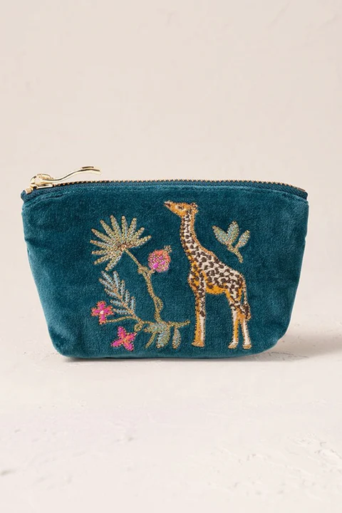 Coin Purse | Wild Giraffe Rich Blue Velvet