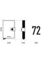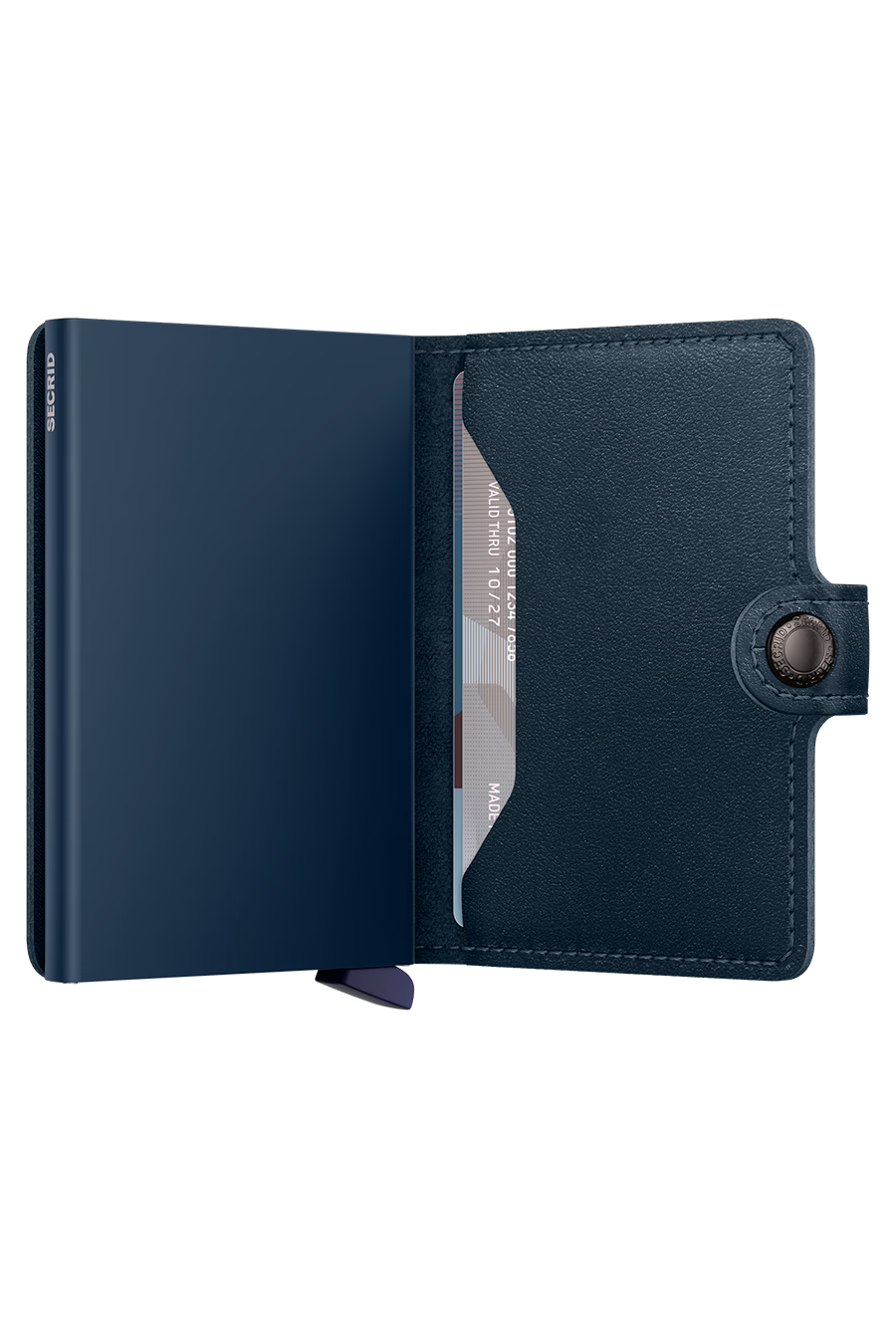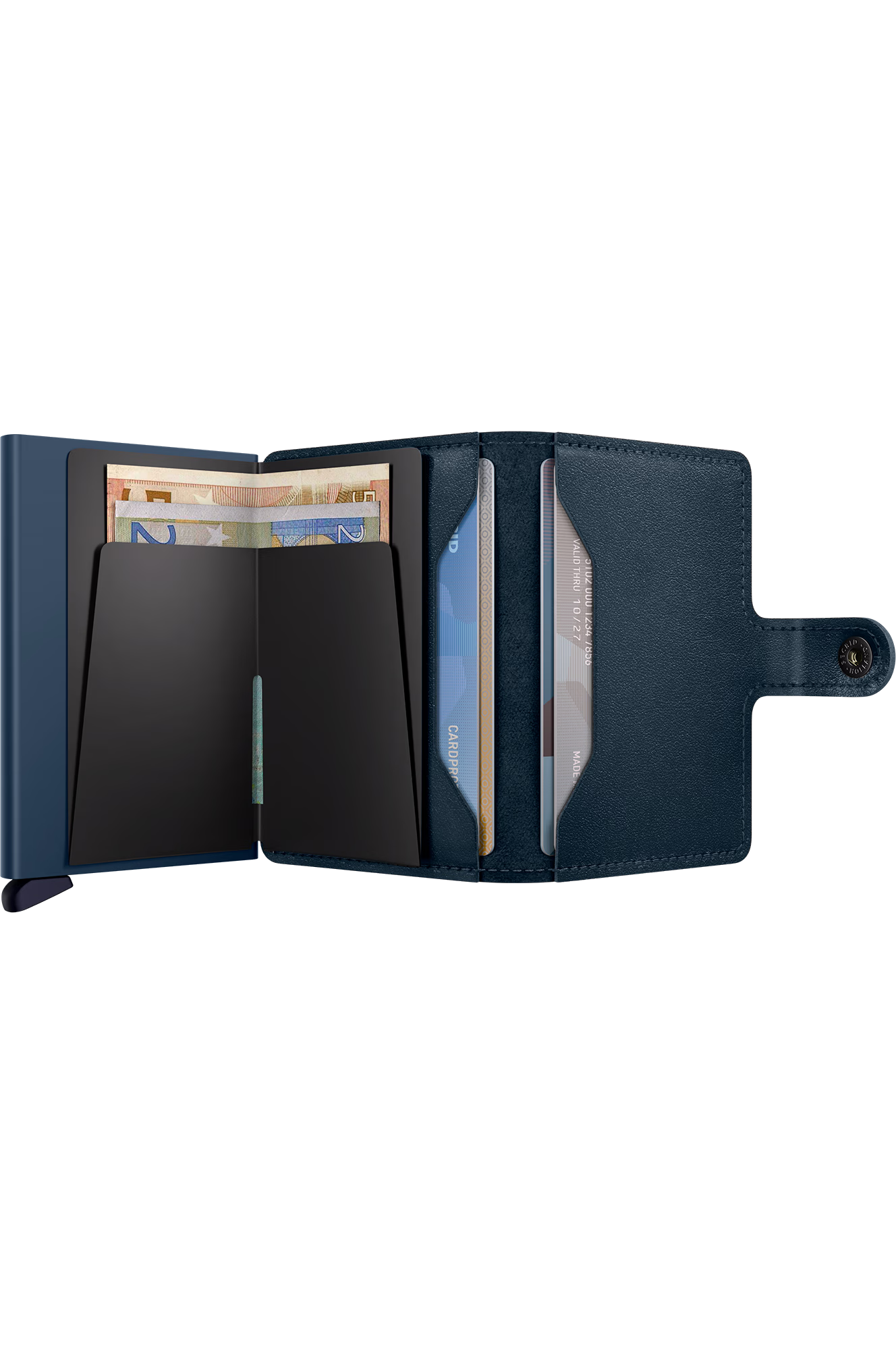 Small in size and surprisingly large in storage capacity, the Miniwallet combines the best of both worlds. The exterior holds banknotes, receipt and cards, while the aluminium Cardprotector allows you to slide out cards with one simple motion and protects them from bending, breaking and unwanted wireless communication.