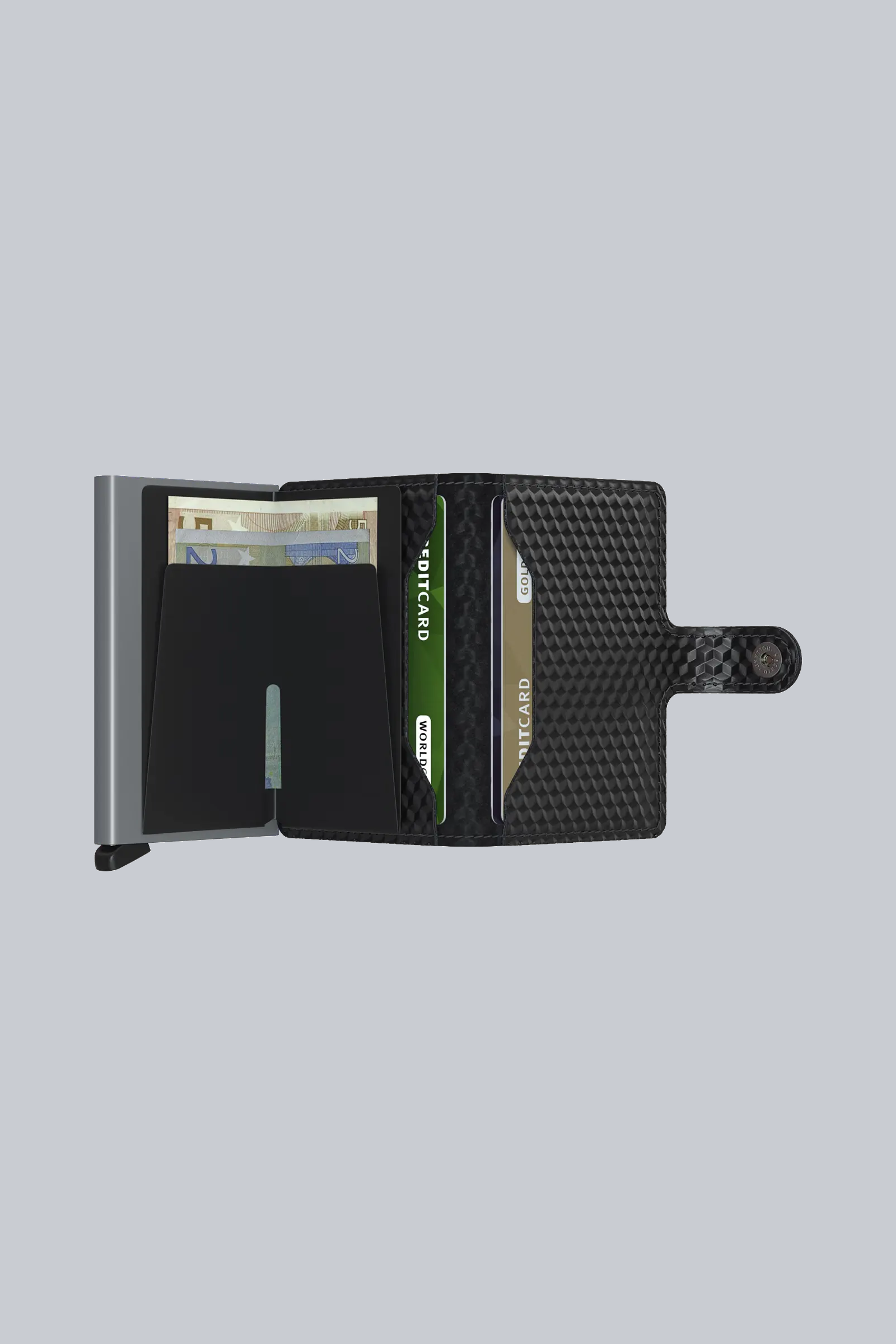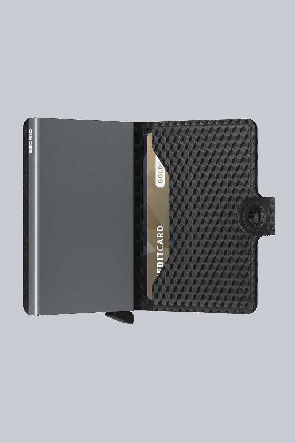 Small in size and surprisingly large in storage capacity, the Miniwallet combines the best of both worlds. The exterior holds banknotes, receipt and cards, while the aluminium Cardprotector allows you to slide out cards with one simple motion and protects them from bending, breaking and unwanted wireless communication.