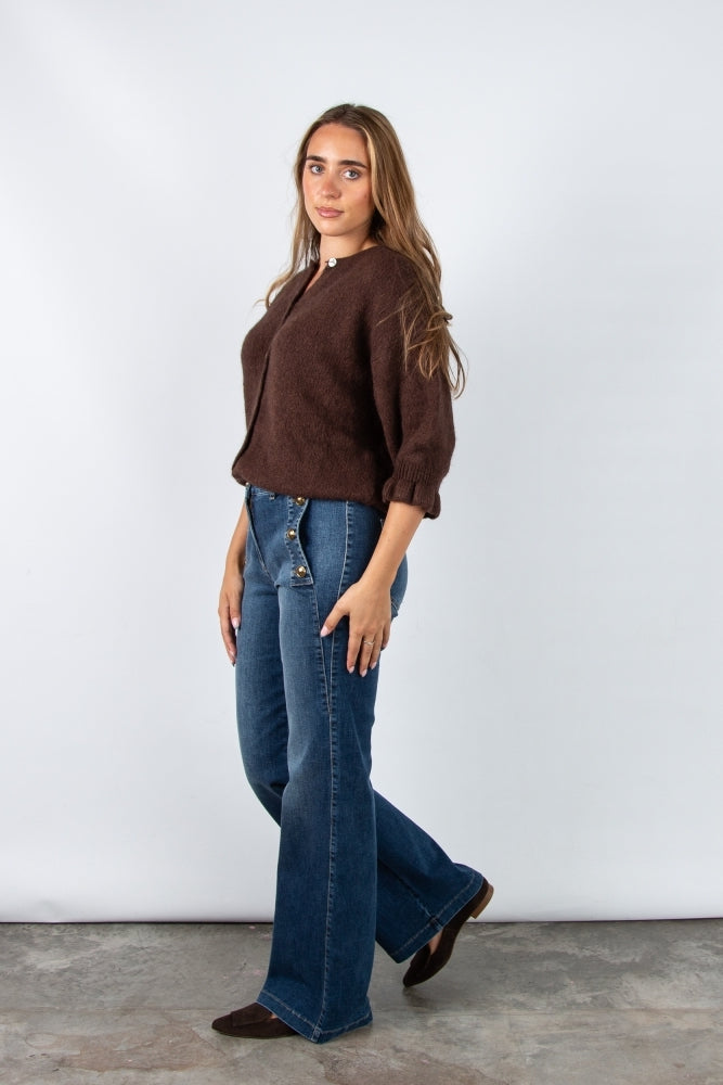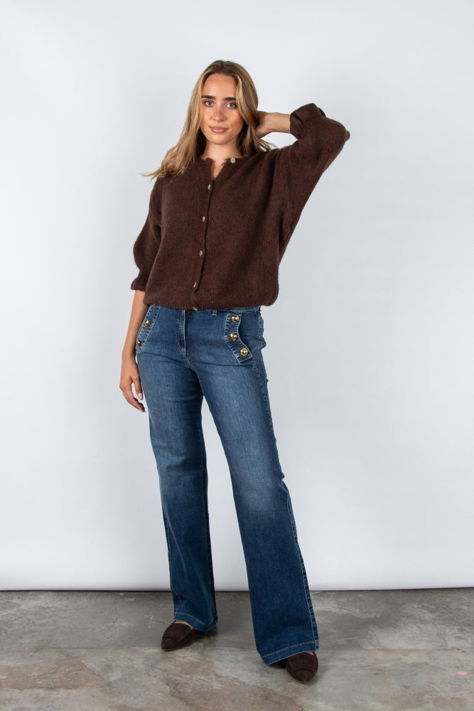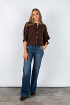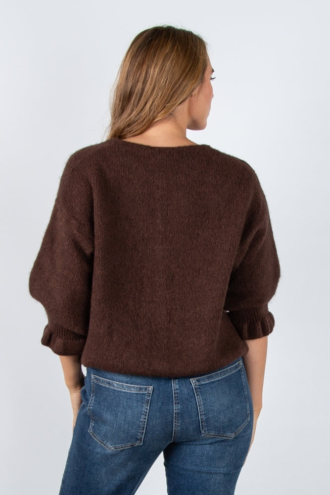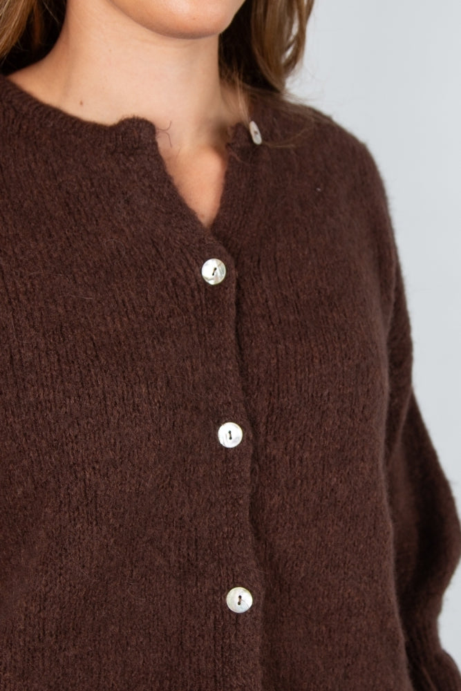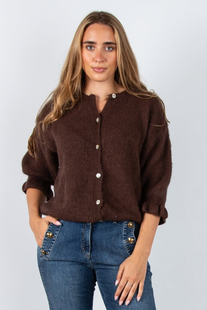 Stay cozy and stylish with the Marta Soft Knit Button Cardigan in Chocolate. Featuring a soft knit fabric, delicate frill cuffs, and a classic button-down design, this elegant cardigan is perfect for layering. A versatile must-have for effortless, everyday style.