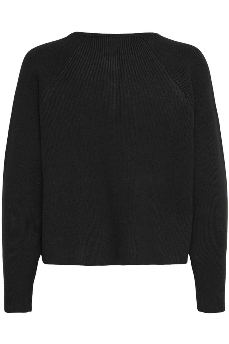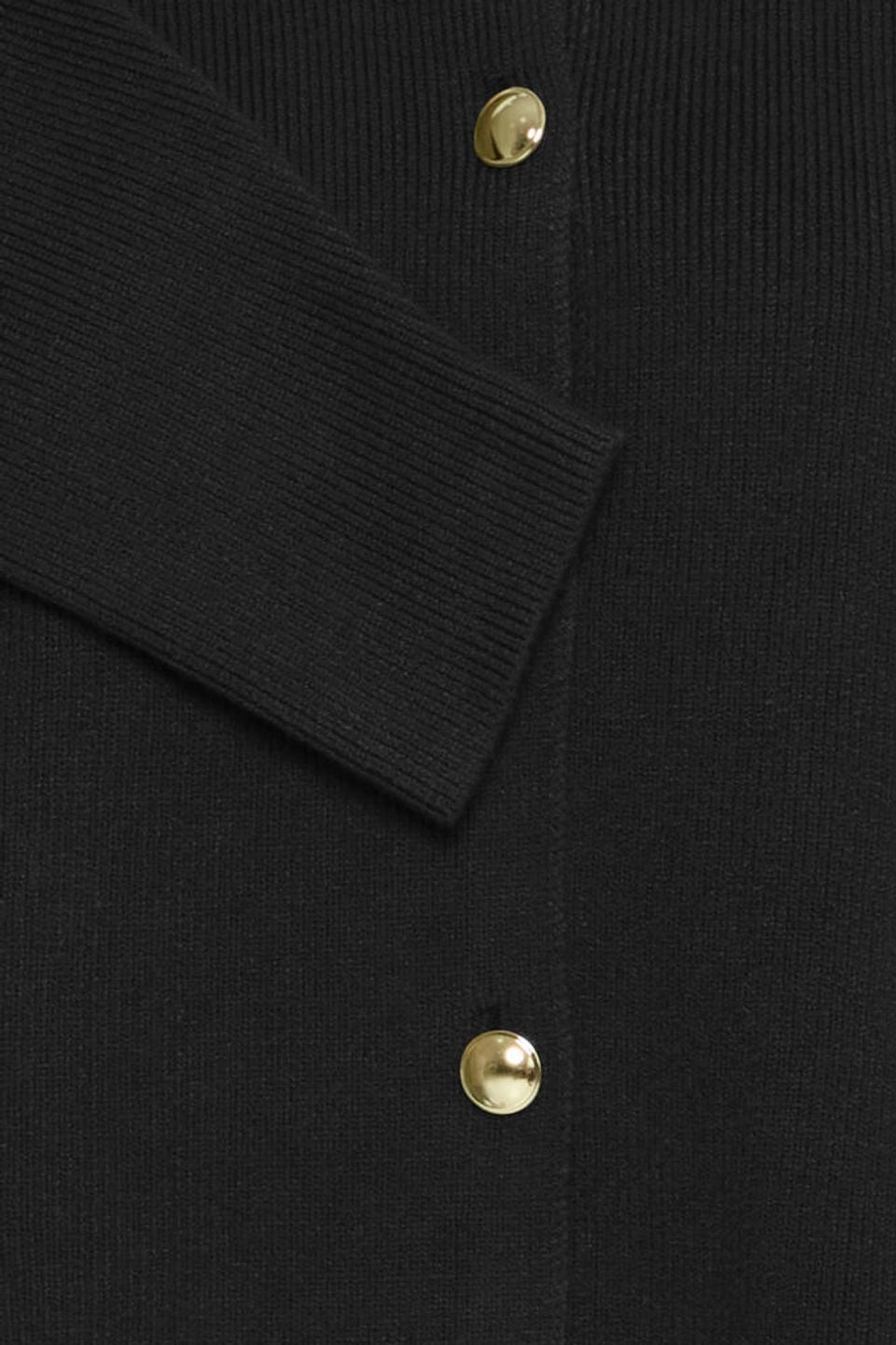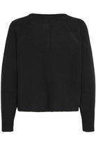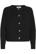 The Kanya Cardigan in Black showcases a refined ribbed knit design. This sophisticated piece offers a flattering fit and timeless elegance, making it an ideal choice for layering with both casual and polished outfits.