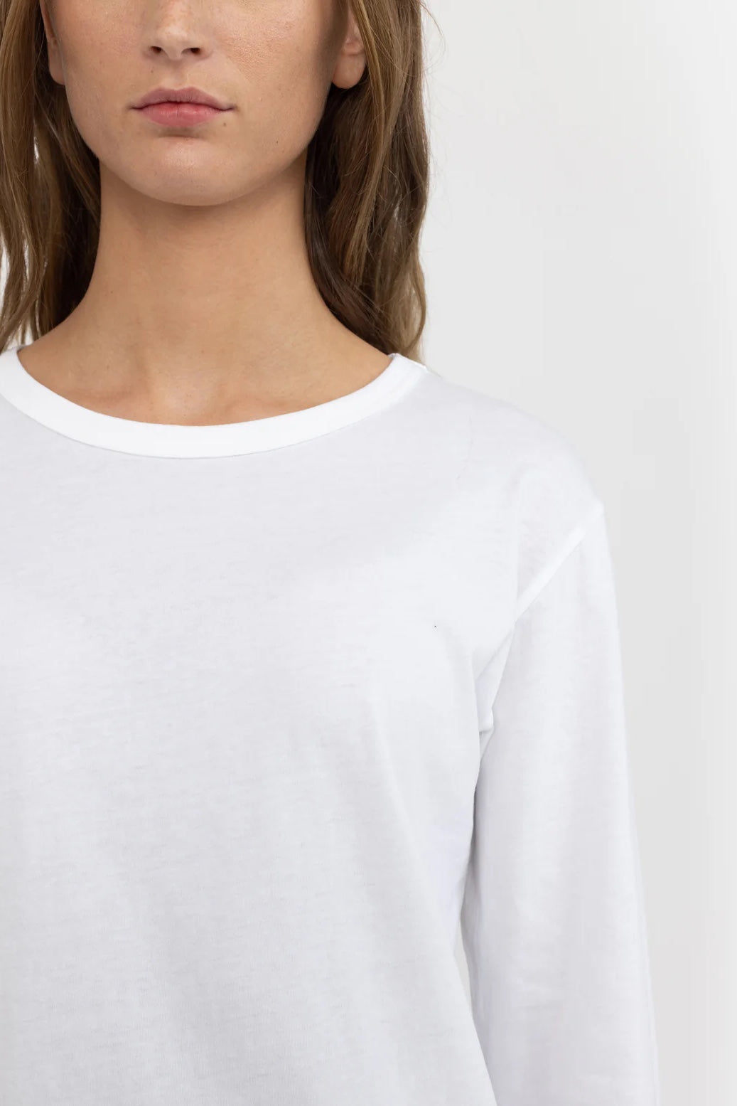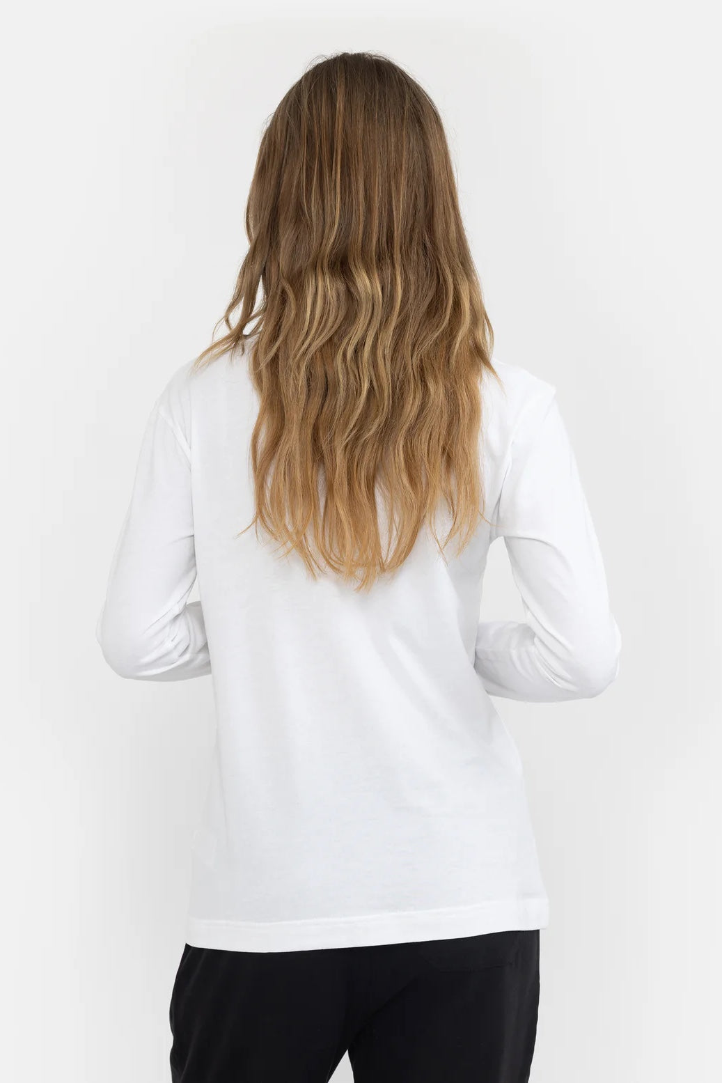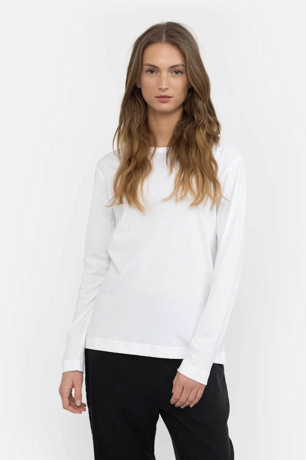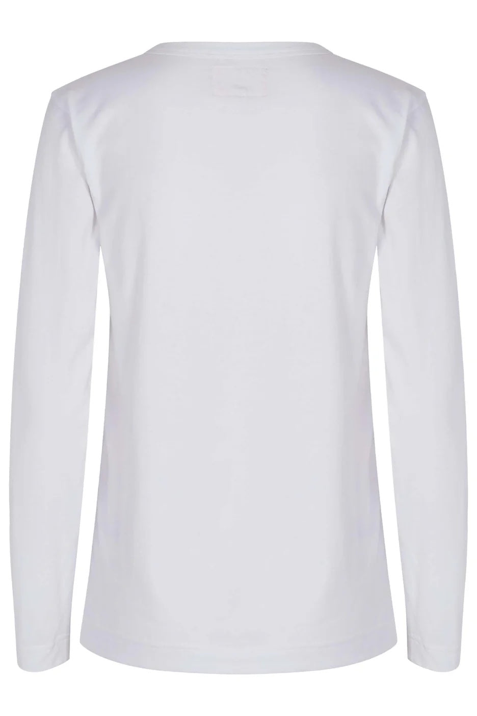 Elevate your essentials with the Maja T-shirt in crisp white. This refined long sleeve features a classic O-neck silhouette and subtle sleeve embroidery for understated elegance. Crafted from 100% organic cotton, it offers premium comfort with environmental consciousness. The regular fit ensures versatile styling for both casual and more polished occasions.