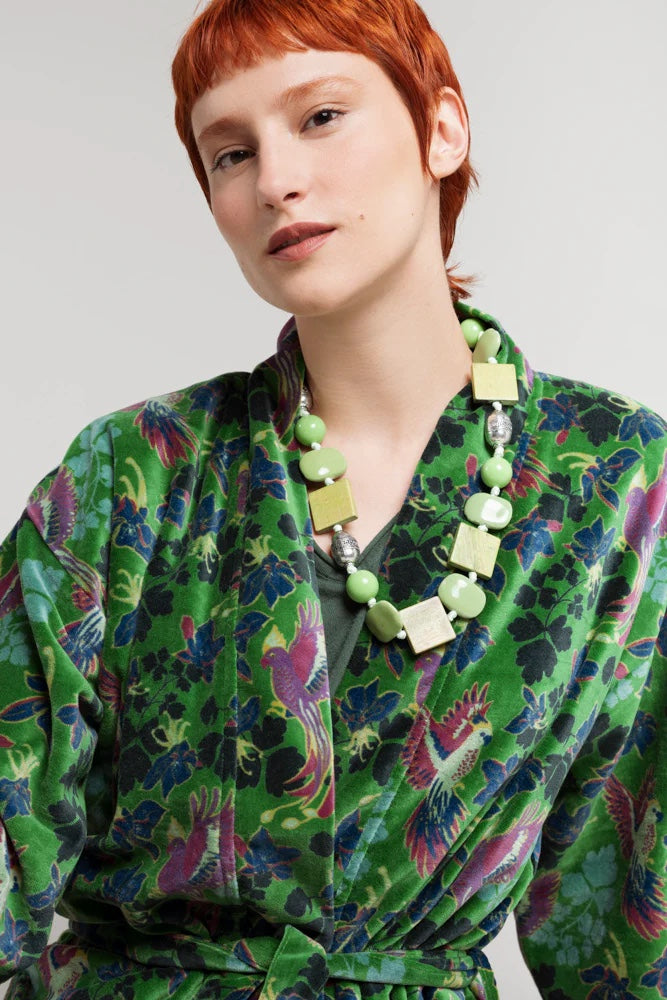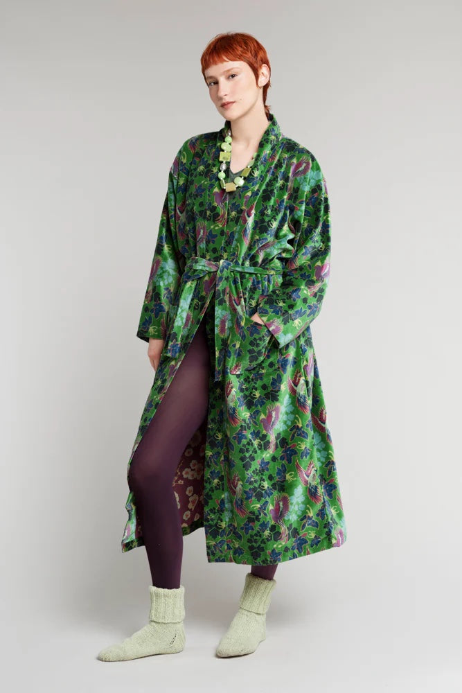 Wrap yourself in the luxe feel of this vibrant green velvet kimono, bursting with a playful floral pattern. Made from 100% cotton velvet, it’s soft, breathable, and comfortable for all-day wear. The included belt lets you cinch the waist for a flattering fit — because one size truly fits all! Perfect for adding a splash of colour and charm to any outfit.