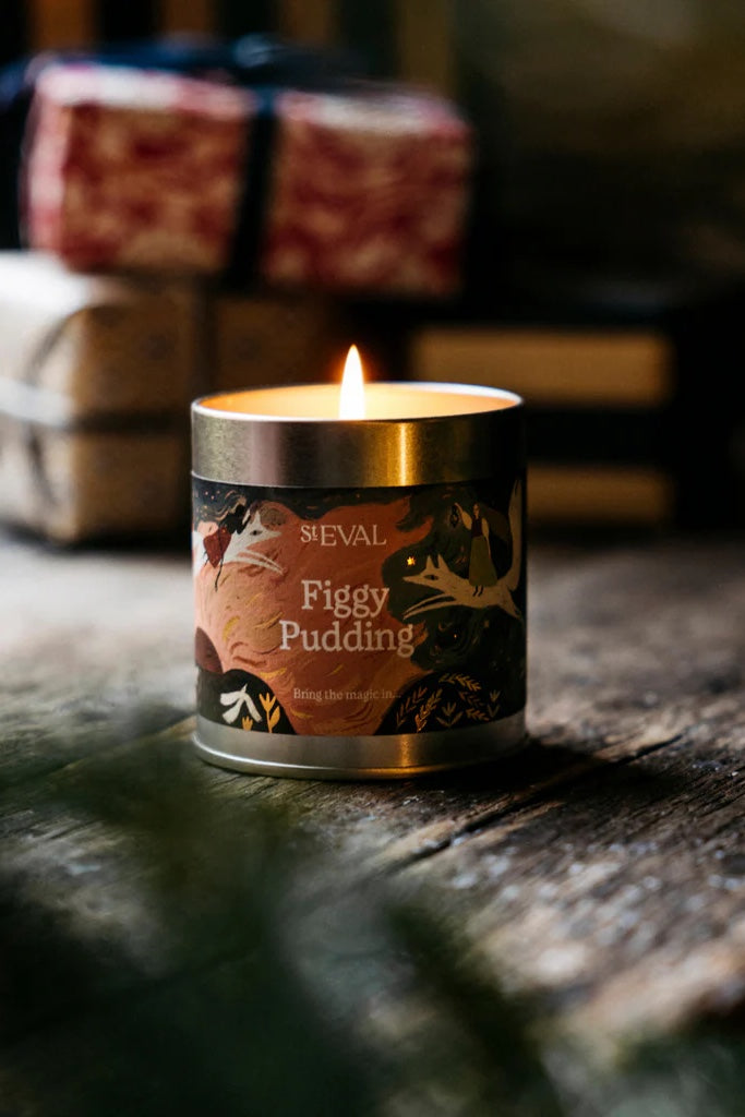 Two excited clementines bouncing in a stocking and one mature pudding, soaked in brandy and set ablaze. Step into a world of festive wonder with our Figgy Pudding Scented Tin Candle.