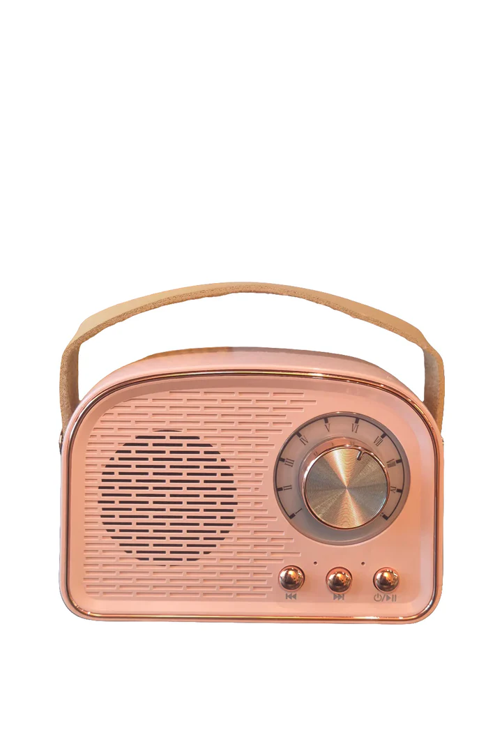 Retro FM Radio & Bluetooth Speaker | Candy Floss Pink & Gold