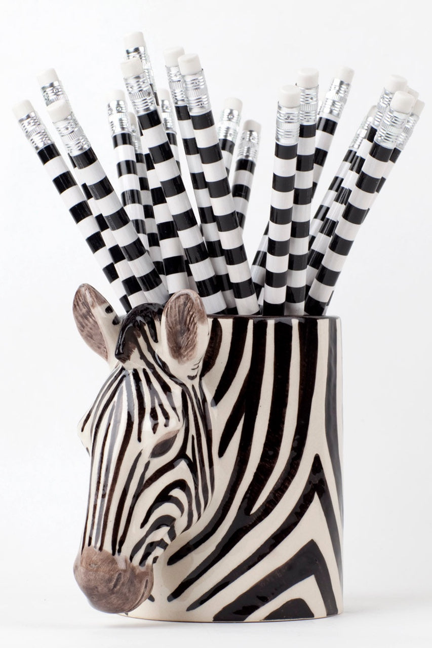 Store your writing utensils in style with our Zebra Pencil Pot. Hand-painted on durable stoneware, this pot adds a touch of charm to any desk. Plus, it's dishwasher safe for easy cleaning. Standing at 10 cm, it's the perfect size for all your pencils. Upgrade your office with this sophisticated and functional addition.