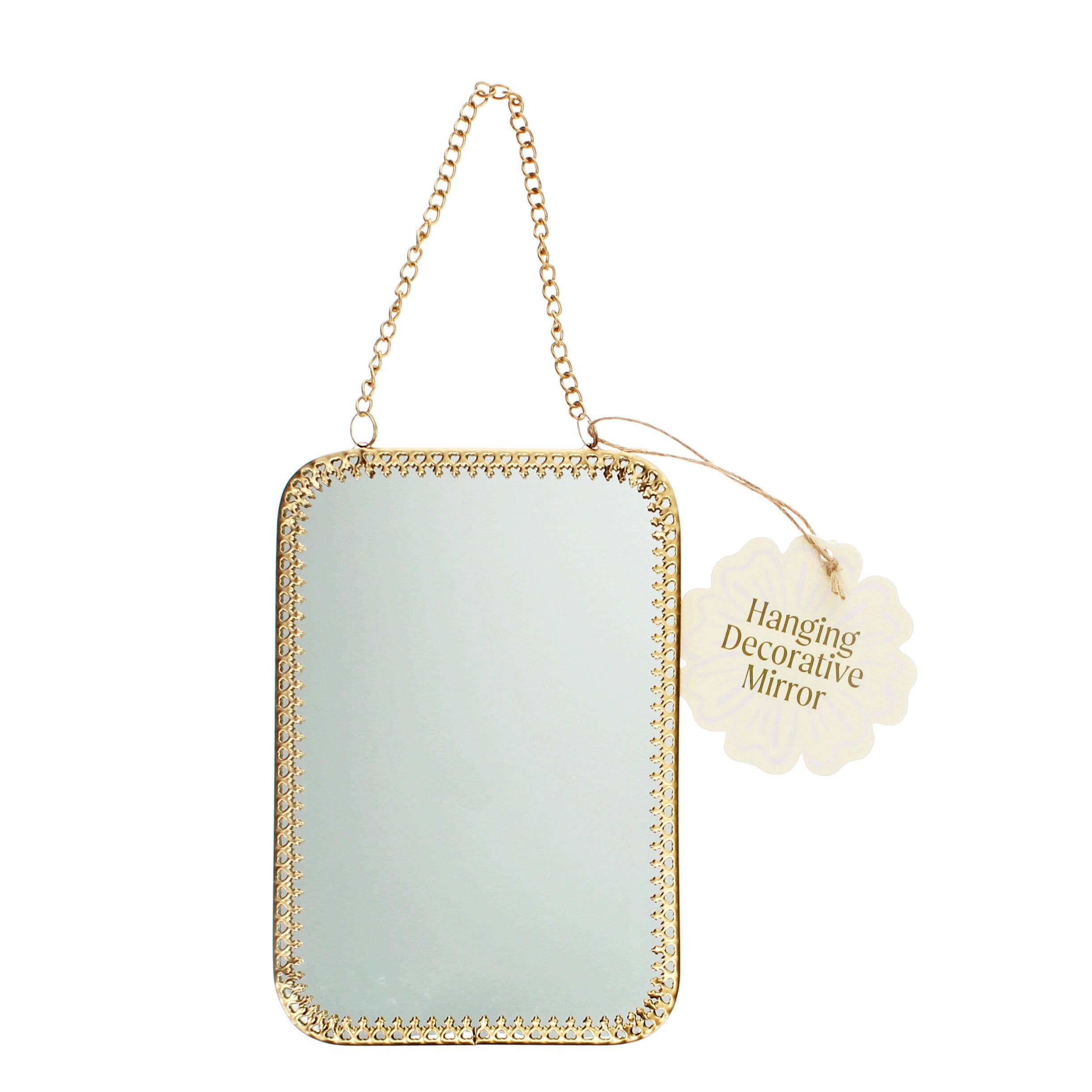 Rectangular Hanging Mirror (15.5cm X 10.5cm) - Gold Tone