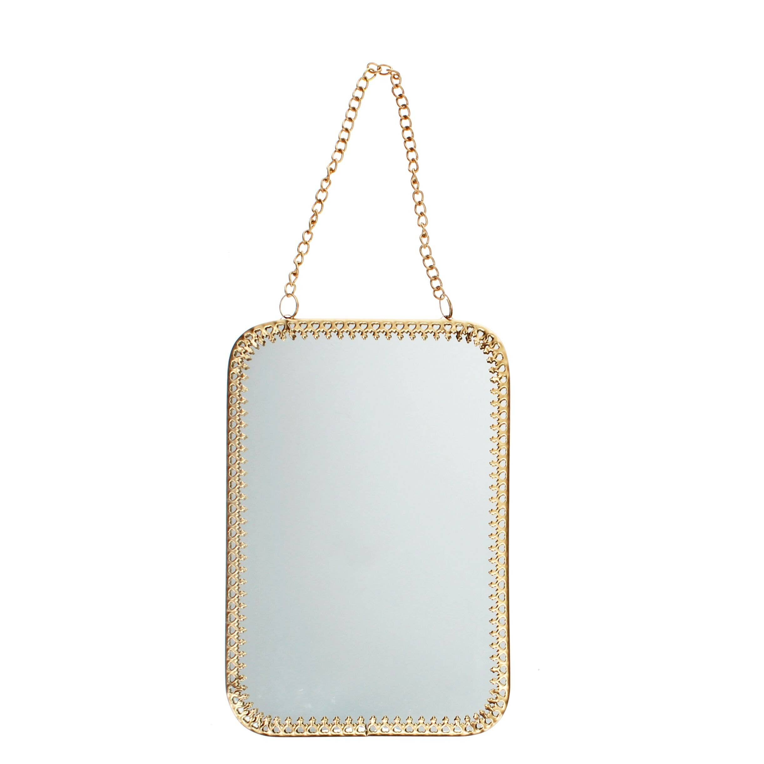 Add a touch of elegance (without breaking the bank) to any room with our rectangular hanging mirror. Sleek and slim, framed in gold with a decorative pattern, this mirror is perfect for a quick makeup check or to make a space feel larger. Bonus: it comes with a matching hanging chain!