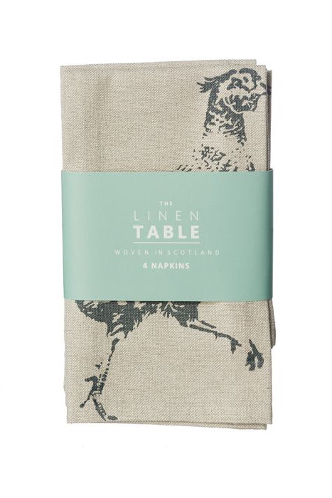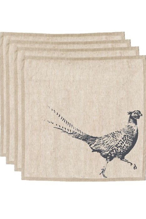 4 unique linen/cotton blend napkins, each screen printed with a unique pheasant design. These distinctive napkins will adorn your table. The natural finish of these napkins offer a minimalist look that will add a simple sophistication to your table. The perfect go-to pieces for dinner or drinks.
