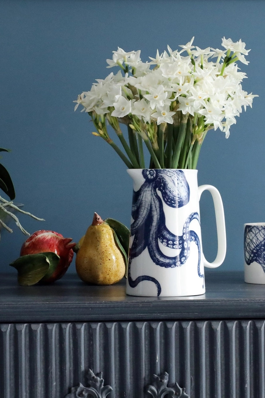 Our bone china Octopus Jug is our best seller. The beautifully illustrated octopus looks like it's dancing around the jug, it's delicate and intricately drawn tentacles will mesmerise you as they wrap around the jug.