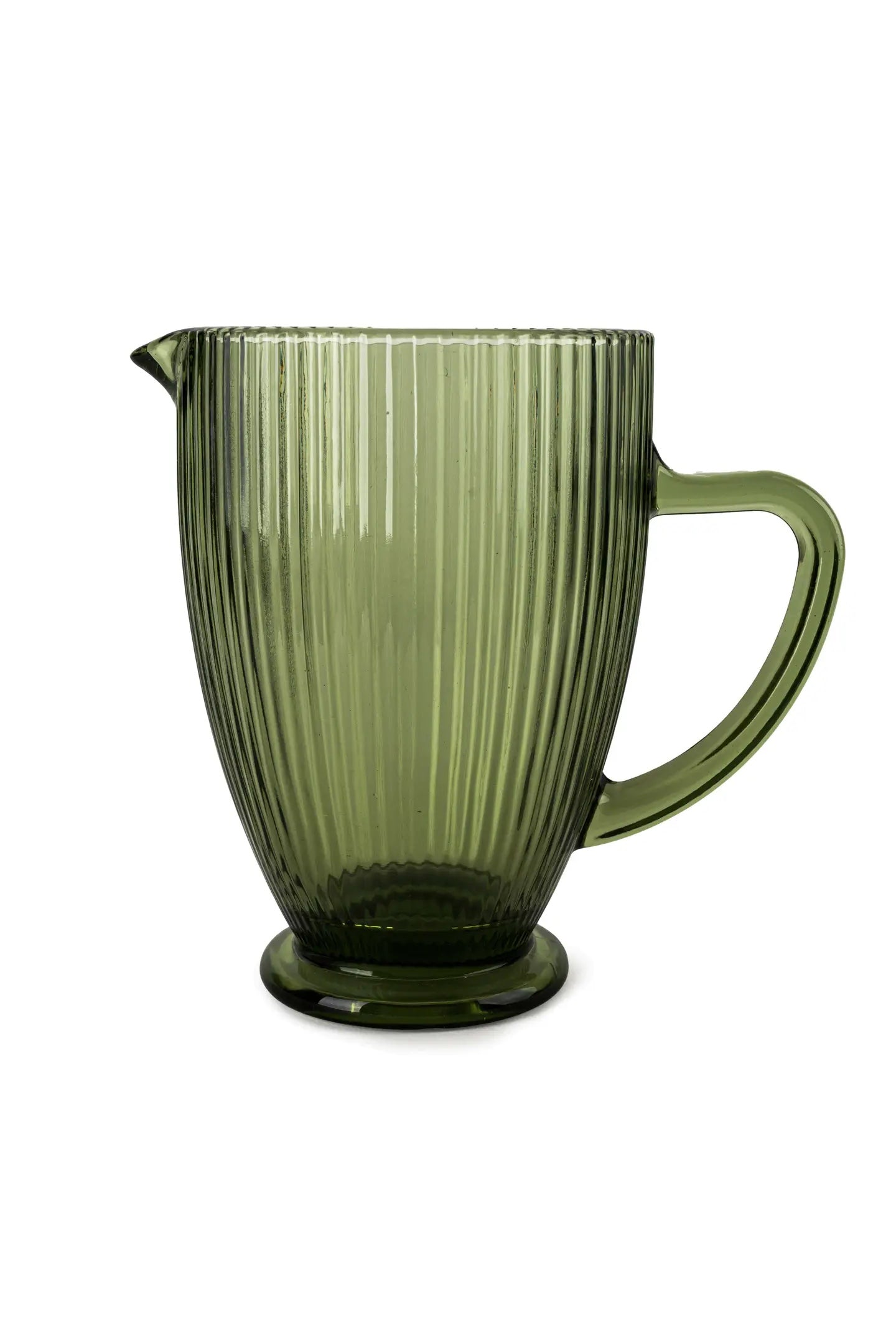 Add a touch of sophistication to your table with the Large Ridged Glass Jug in Green. With a vibrant green hue and a textured, ridged surface, this jug is both functional and stylish. Serve beverages or use it as a decorative piece, either way it's sure to be a conversation starter.