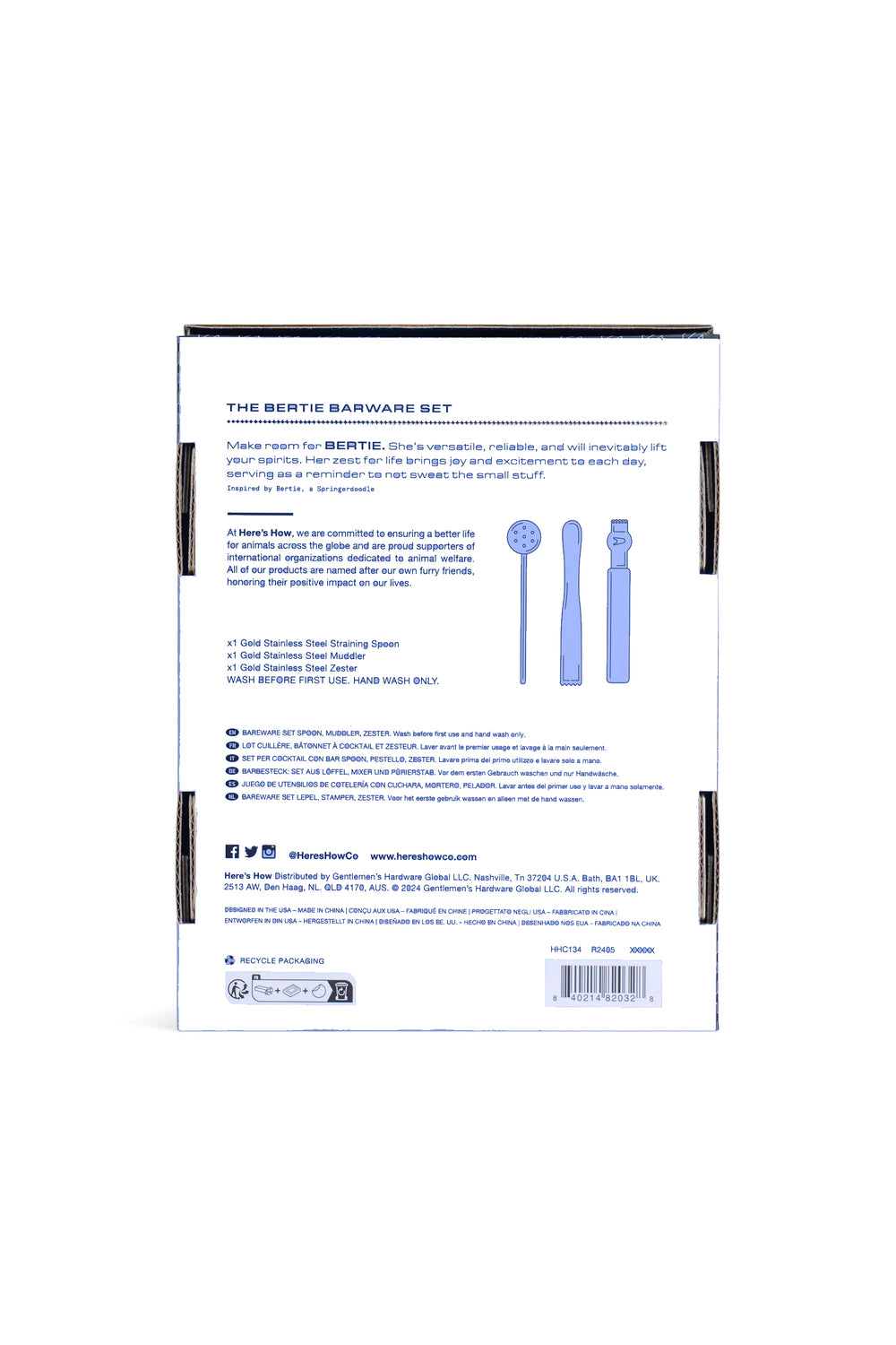 Unleash your inner bartender with our Bertie Barware Set featuring an elegant olive spoon a sturdy muddler and a precision zester. Perfect for cocktail enthusiasts and home entertainers alike this trio is designed to enhance your crafting experience.