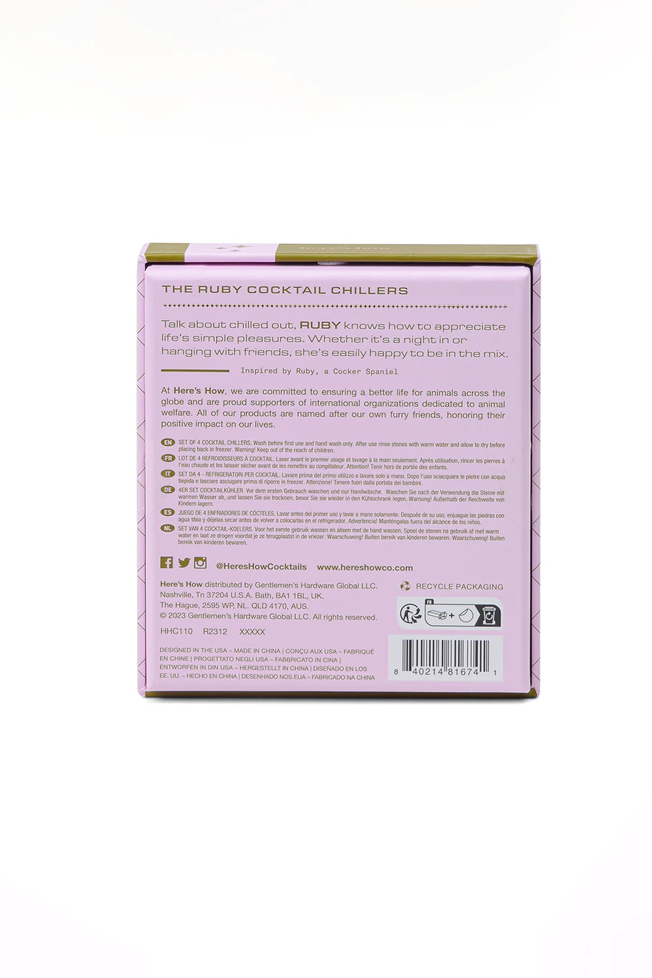THE RUBY COCKTAIL CHILLERS - Talk about chilled out, RUBY knows how to appreciate life’s simple pleasures. Whether it’s a night in or hanging with friends, she’s easily happy to be in the mix. Inspired by Ruby, a Cocker Spaniel