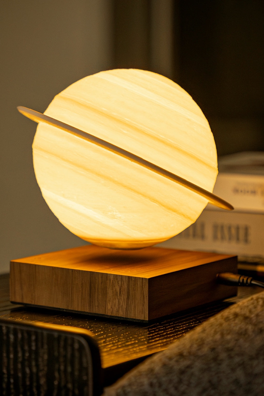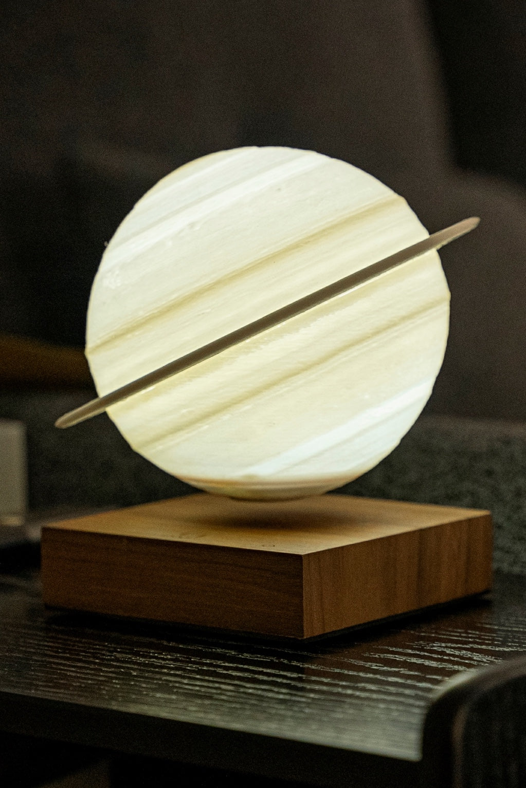 This exquisite lamp is meticulously 3D-printed in the shape of Saturn, capturing the celestial beauty of the iconic planet with stunning detail. What sets this lamp apart is its magnetic levitation technology, allowing it to gently float above a handcrafted real walnut wood base.