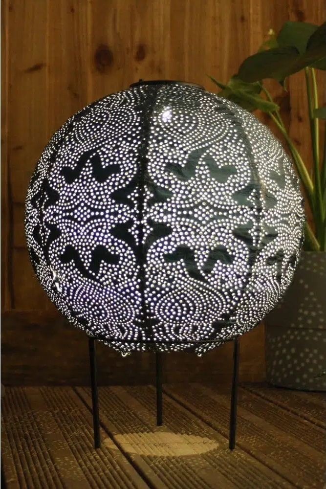 This Moroccan touch… this outdoor hanging and table LED light ornament which features a built in solar battery.