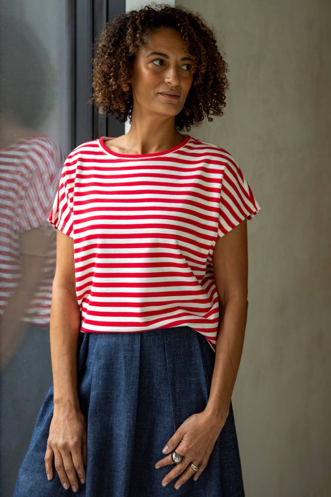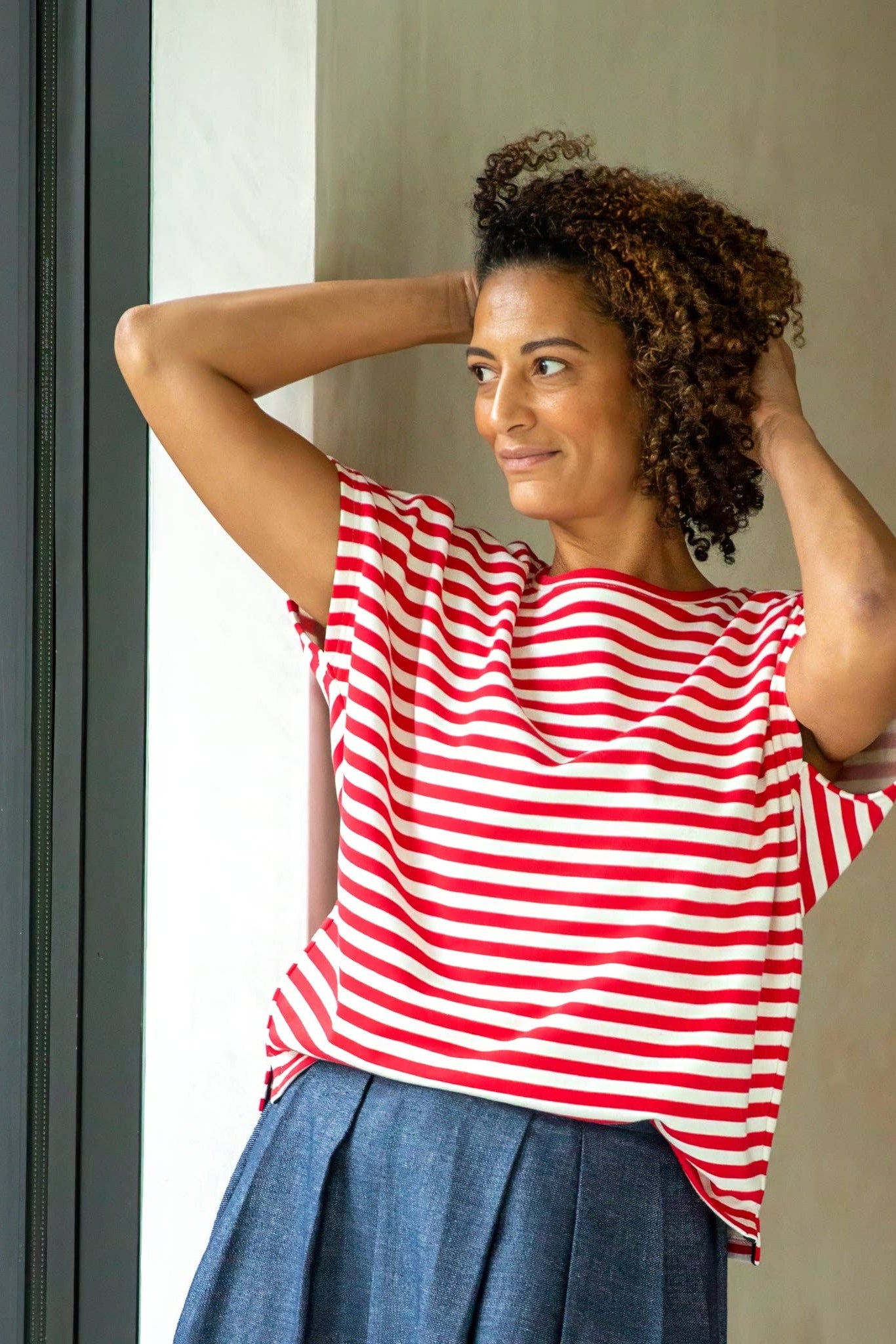 Wei Stripe Top | Red/Ecru
