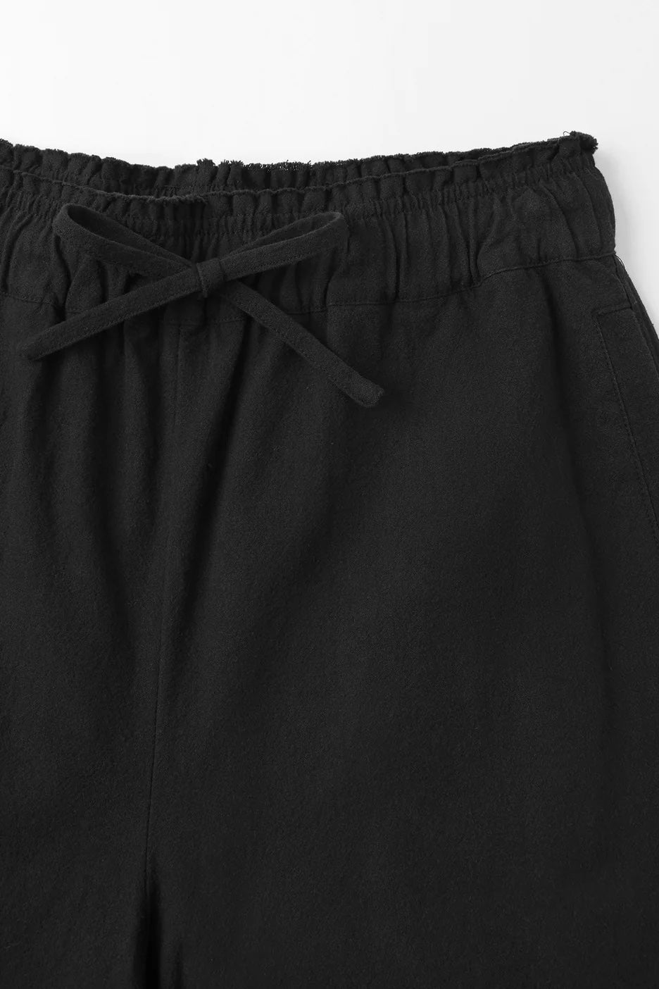 Elevate your wardrobe with our Mio Pants in black. Crafted from 100% organic cotton, these pants offer a comfortable and sustainable option. The elastic waist with a tie string and raw edges, paired with functional side and back pockets, make these pants effortlessly stylish and versatile. With an inseam length of 78cm in size S, these pants are a must-have for the modern, conscious individual.