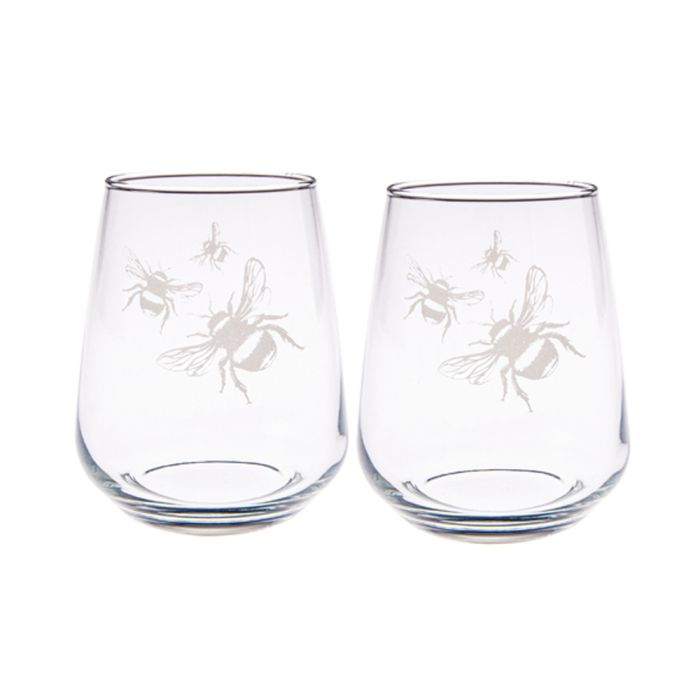 This set of 2 stemless glasses feature a unique engraving of a trio of bees, adding a touch of quirky elegance to your drinking experience. The glasses are perfect for any occasion, from a romantic dinner for two to a fun night with friends. Ideal gift for weddings, anniversaries, or any special occasion.