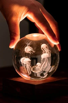 The Gingko Amber Crystal Ball Night Light Collection is designed to add a touch of magic and wonder to your space. It features 17 lighting pieces, each with its own unique 3D laser-engraved design.