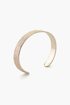 Introducing the Breathe Bangle Gold, a handcrafted open bangle with a textured surface. Made with recycled and traceable materials, this brass bangle is plated with luxurious gold and finished with a protective coating. Wear it alone for a subtle touch of elegance or layer it with other pieces. Each bangle comes in a recycled fabric pouch for a sustainable touch. Dimensions: 0.8 cm height, 6 cm inner diameter.