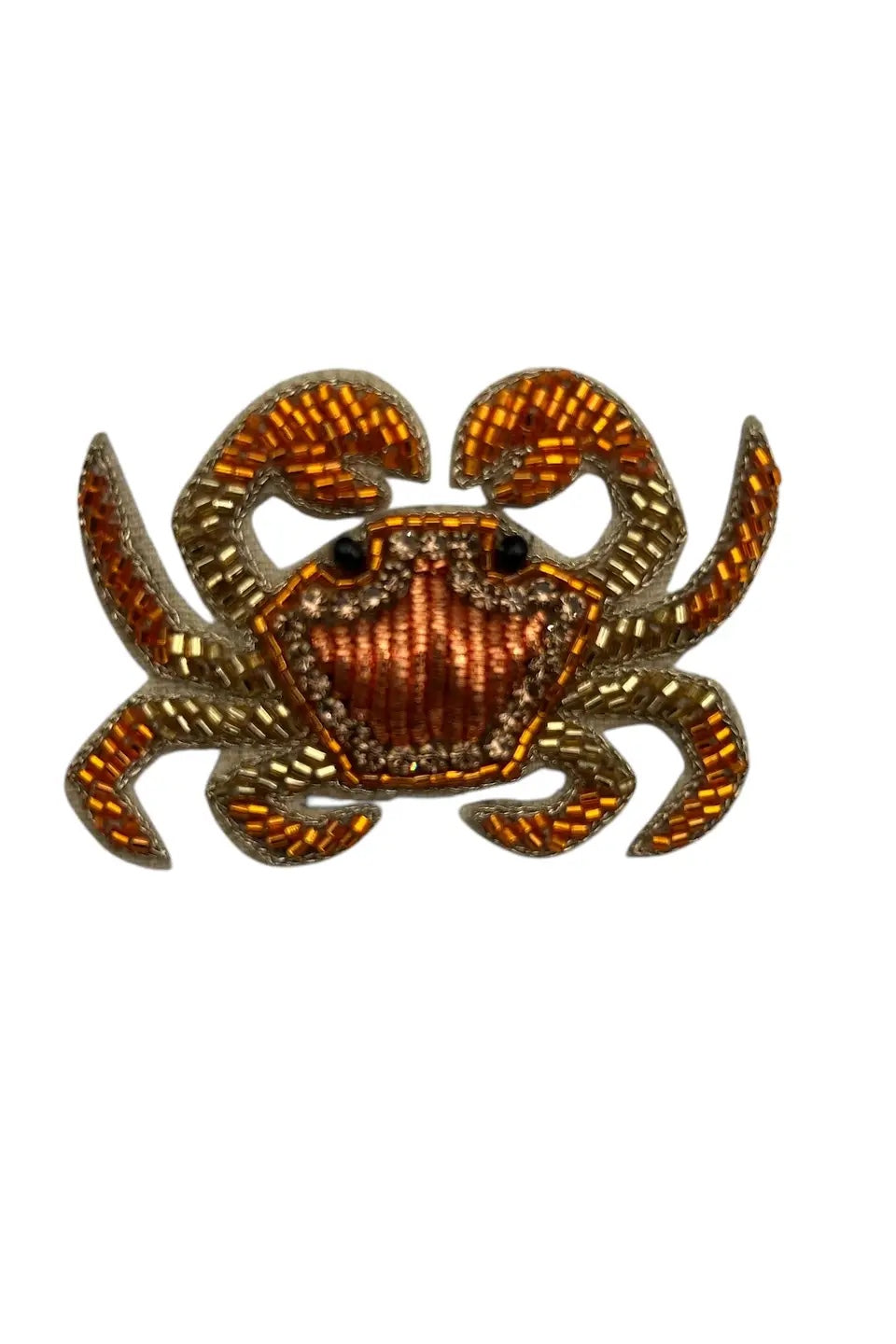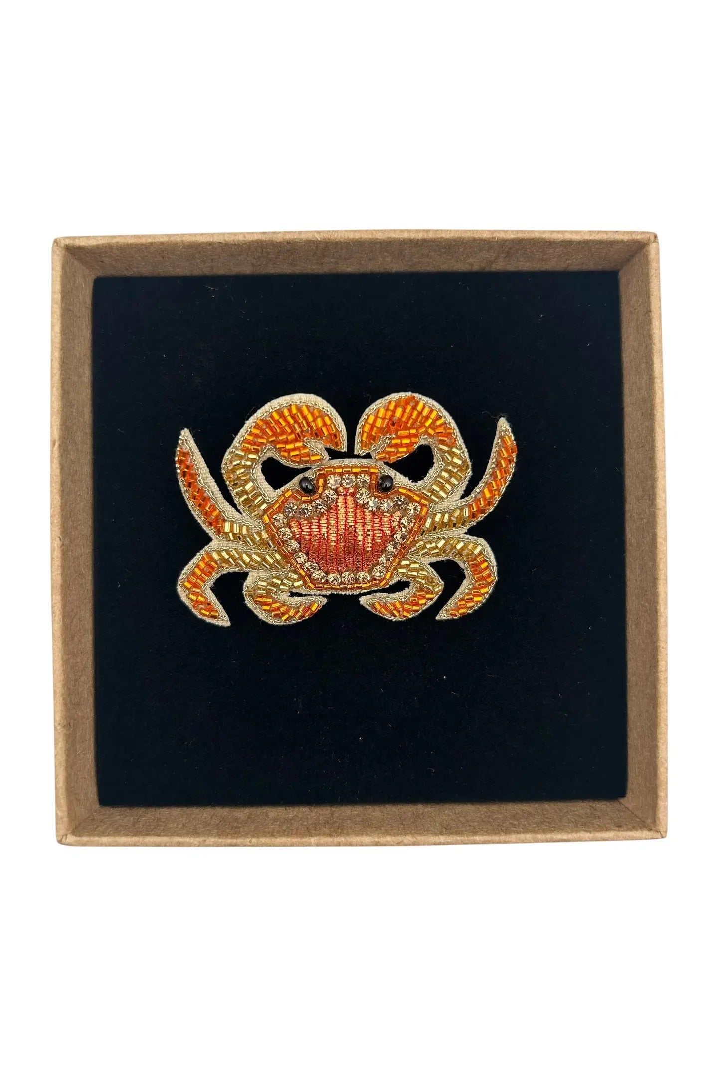 Elevate your style with our exquisitely crafted Crab Brooch. Hand embroidered and beaded, this stunning piece is a true work of art. Measuring 5cm by 3cm, it's the perfect accessory to add a touch of luxury to any outfit. Packaged in a recycled gift box, this brooch is a stylish and sustainable choice. Made in India.