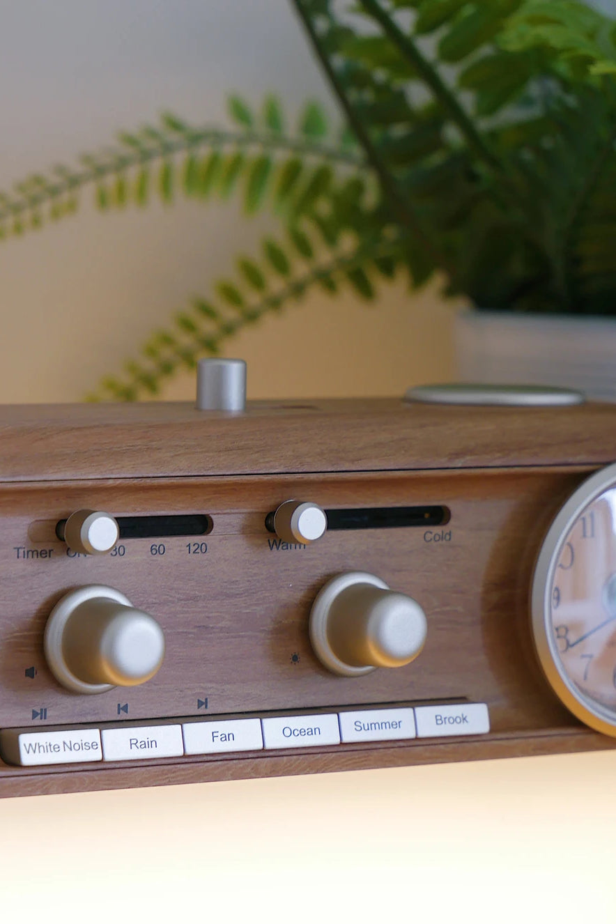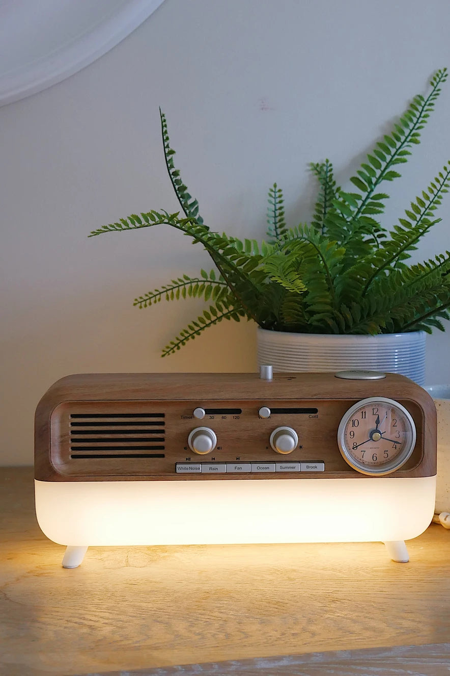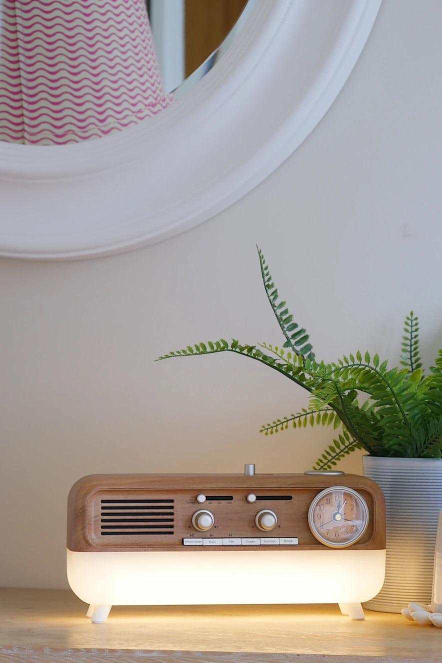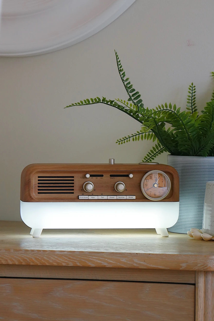 Unwind and embrace serenity with Calm, the perfect bedside companion that combines soothing sleep sounds, warm bedside lighting, and a touch of timeless elegance. This beautiful wood-style effect speaker is designed to guide you into a peaceful slumber, ensuring your nights are filled with tranquility and comfort.