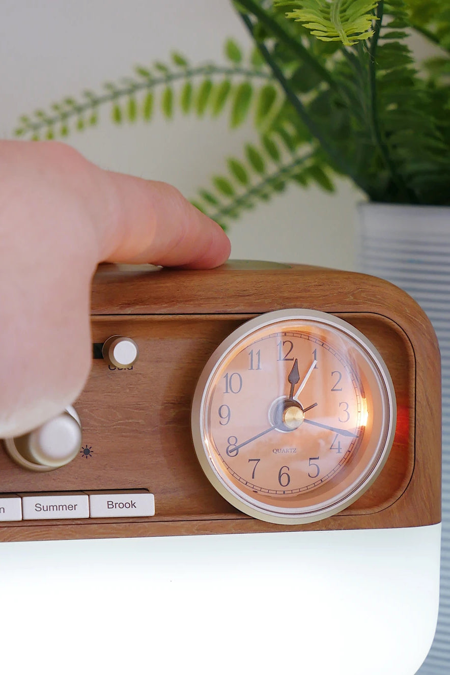 Analog Clock with Backlight: Stay in touch with time in the most analog way possible, courtesy of Calm's classic analog clock with a discreet backlight. Set the alarm and wake up gently to the sounds of your choice, ensuring your mornings start with tranquility.