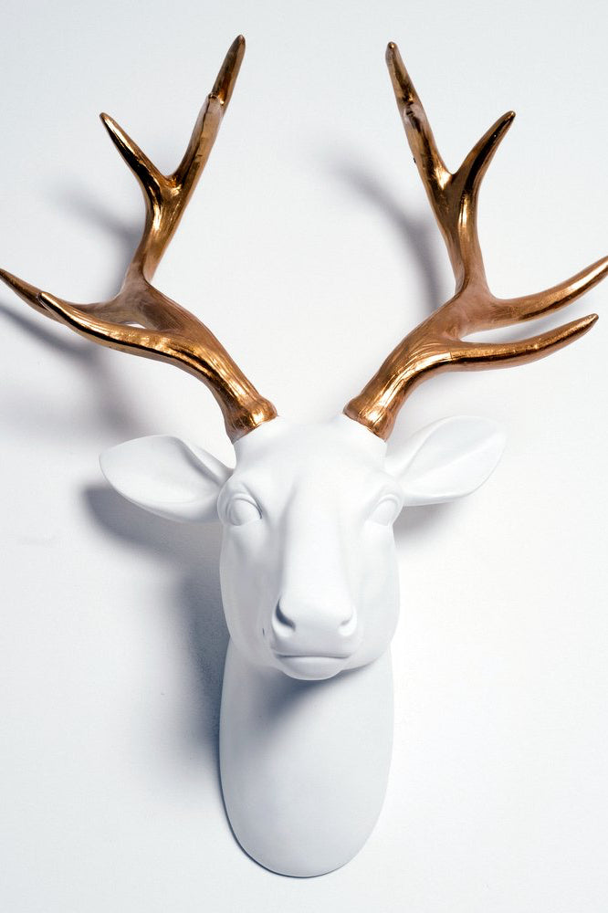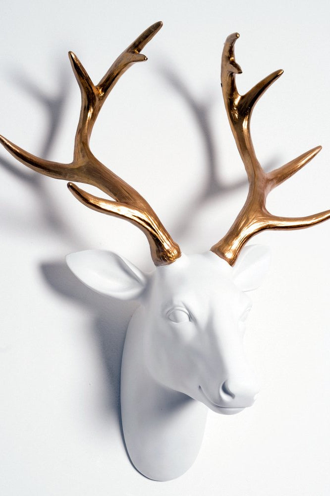 This medium sized wall mounted deer head is available in three colours and styles, Champagne, White & Gold and Black & Gold