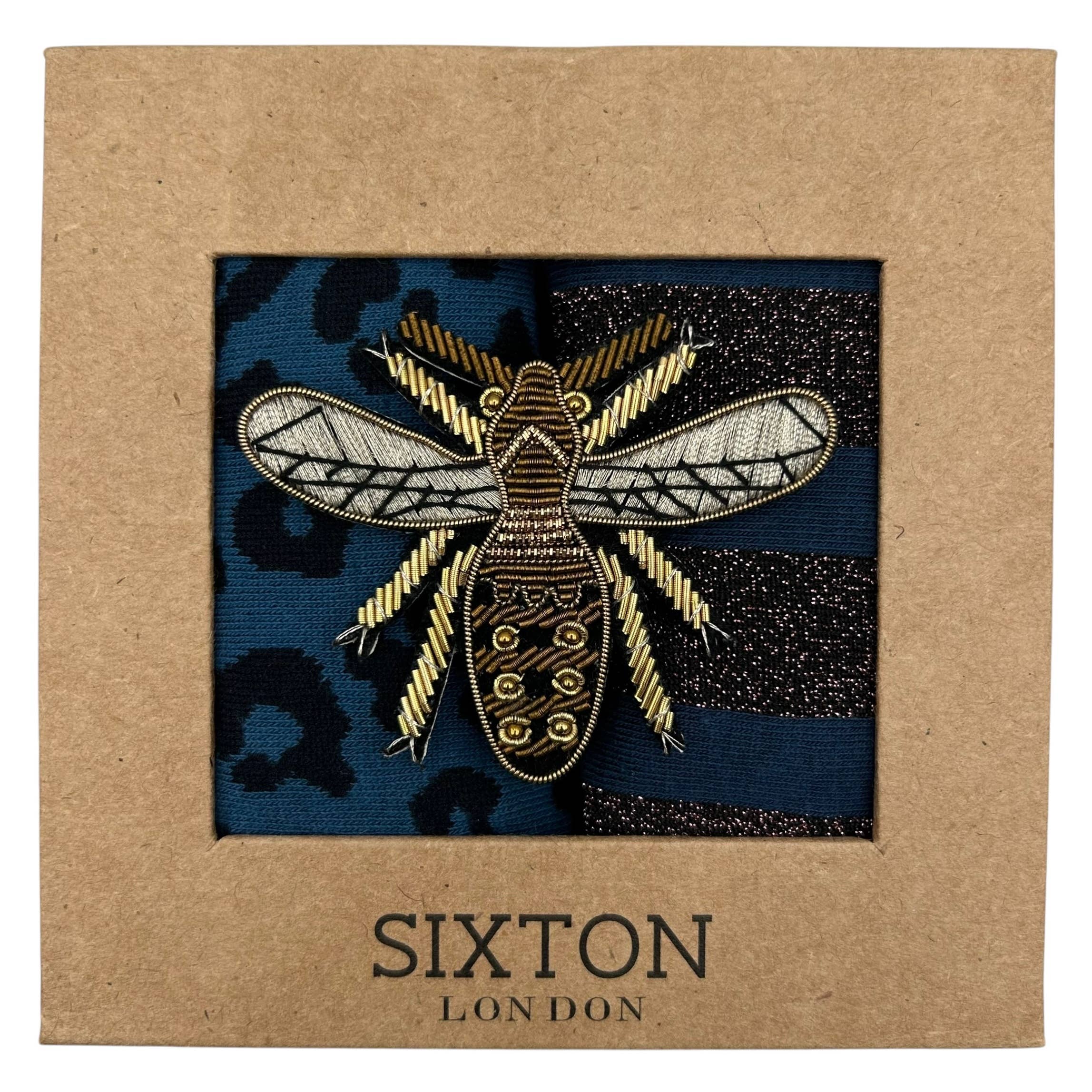Denim Leopard & Berlin Sock Box Duo | Metallic Insect