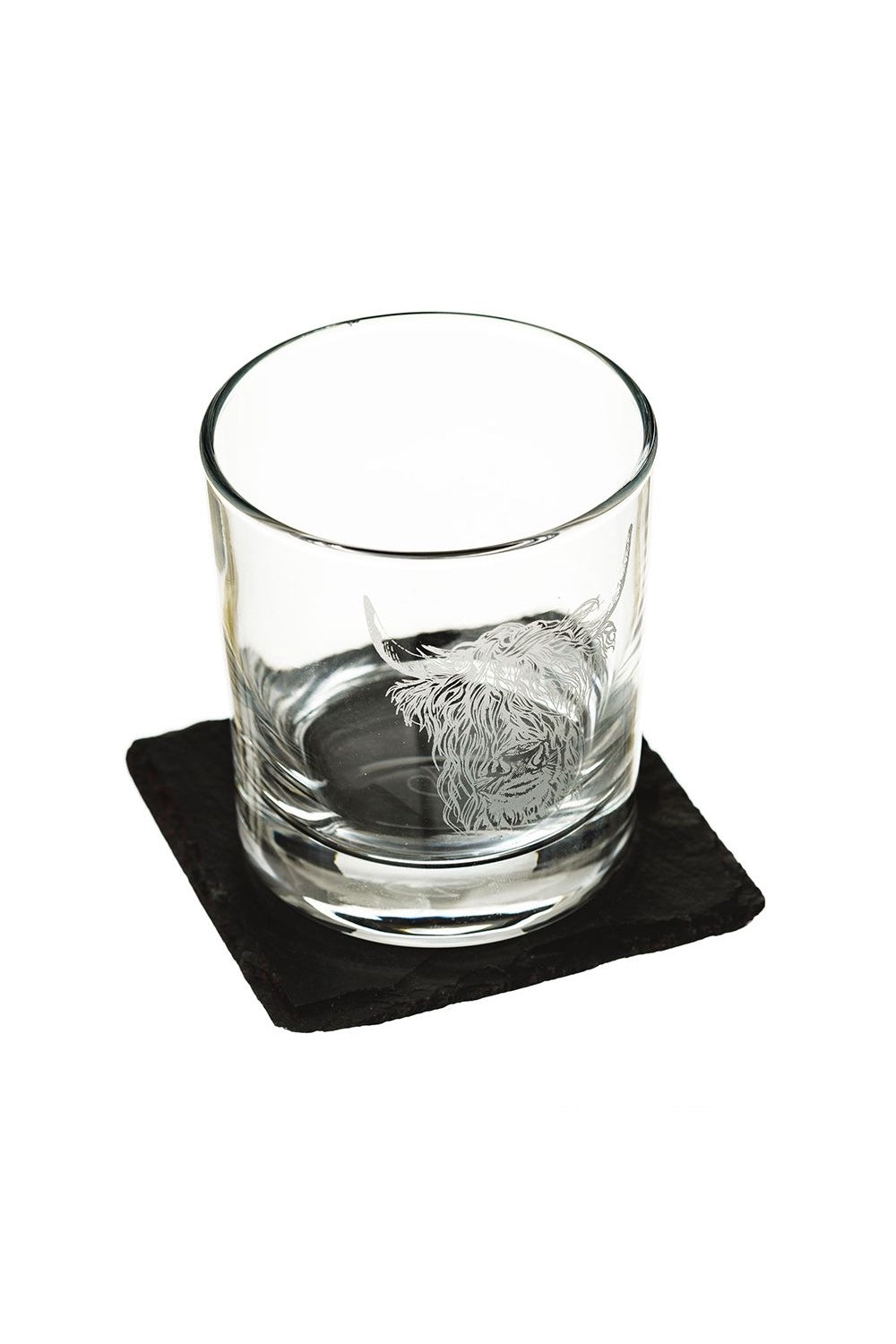 Engraved Glass Tumbler & Slate Coaster Gift Set | Highland Cow