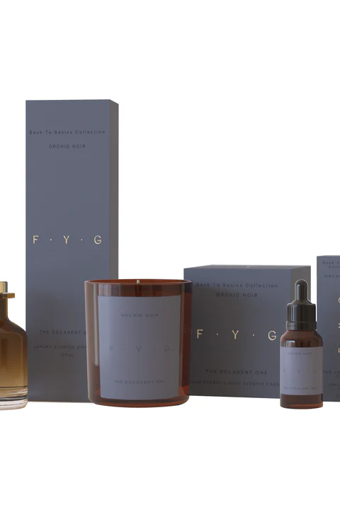The Decadent One. Think luxurious heart of orchid and lotus wood, blended with top notes of ylang, bergamot and truffle. The base notes of vanilla, sandalwood, vetiver & dark chocolate complete this fragrance. Add to an electronic diffuser or potpourri Long lasting scent release 30ml Glass Vessel Making the most of your FYG Fragrance Oils Simply add three to five drops to an electronic diffuser or potpourri. Please carefully read all the safety and allergen information on the pack before use, as this will ensure products are used safely and correctly. Keep out of reach of children or animals, if swallowed, please seek immediate medical attention.