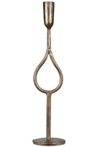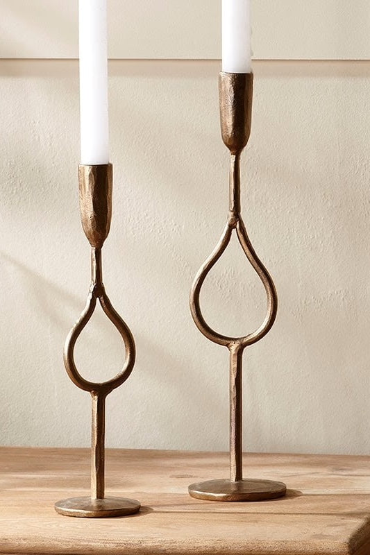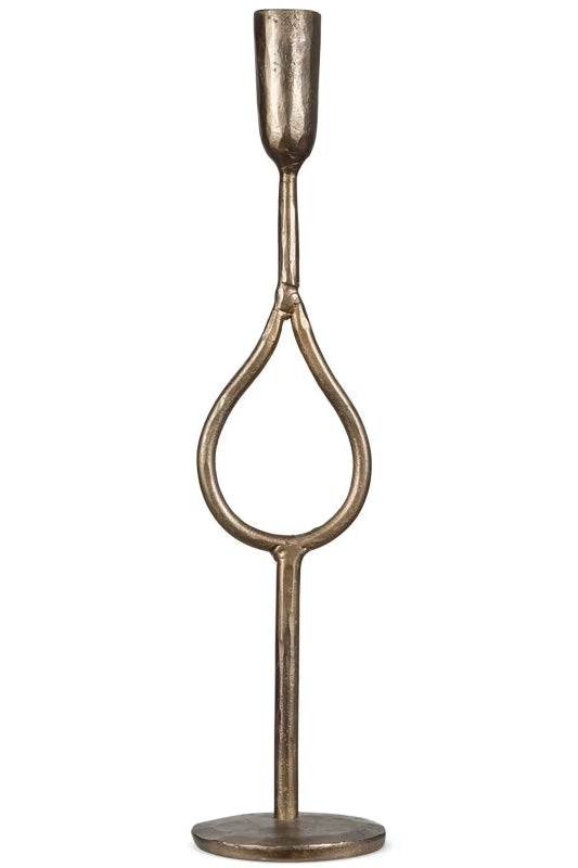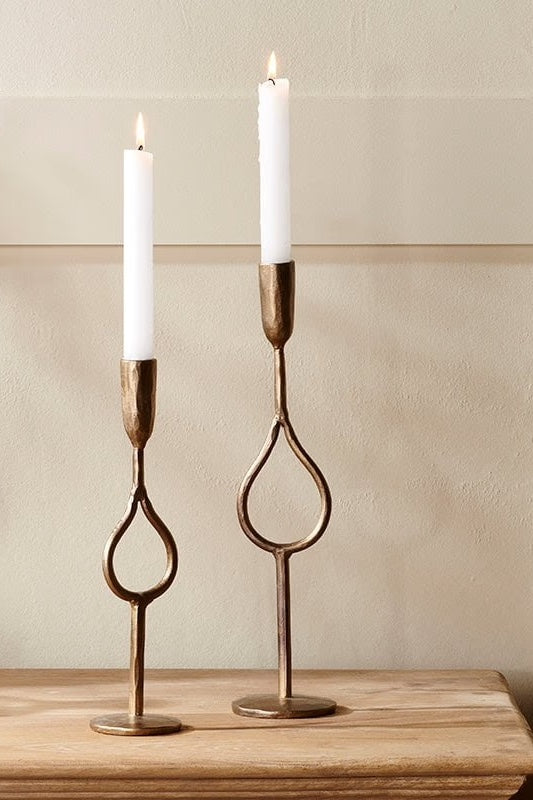 Elevate your dining tablespace with the Padook forged iron candlestick holder. The blend of traditional hand forged iron and the contemporary tear shaped design pair elegantly together, providing an interesting center piece. The hand forged process adds texture and character to each candlestick holder. Curate a stylish vignette with a mix of sizes. The Padook candlestick holders are designed to hold a standard dining candle.