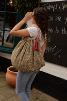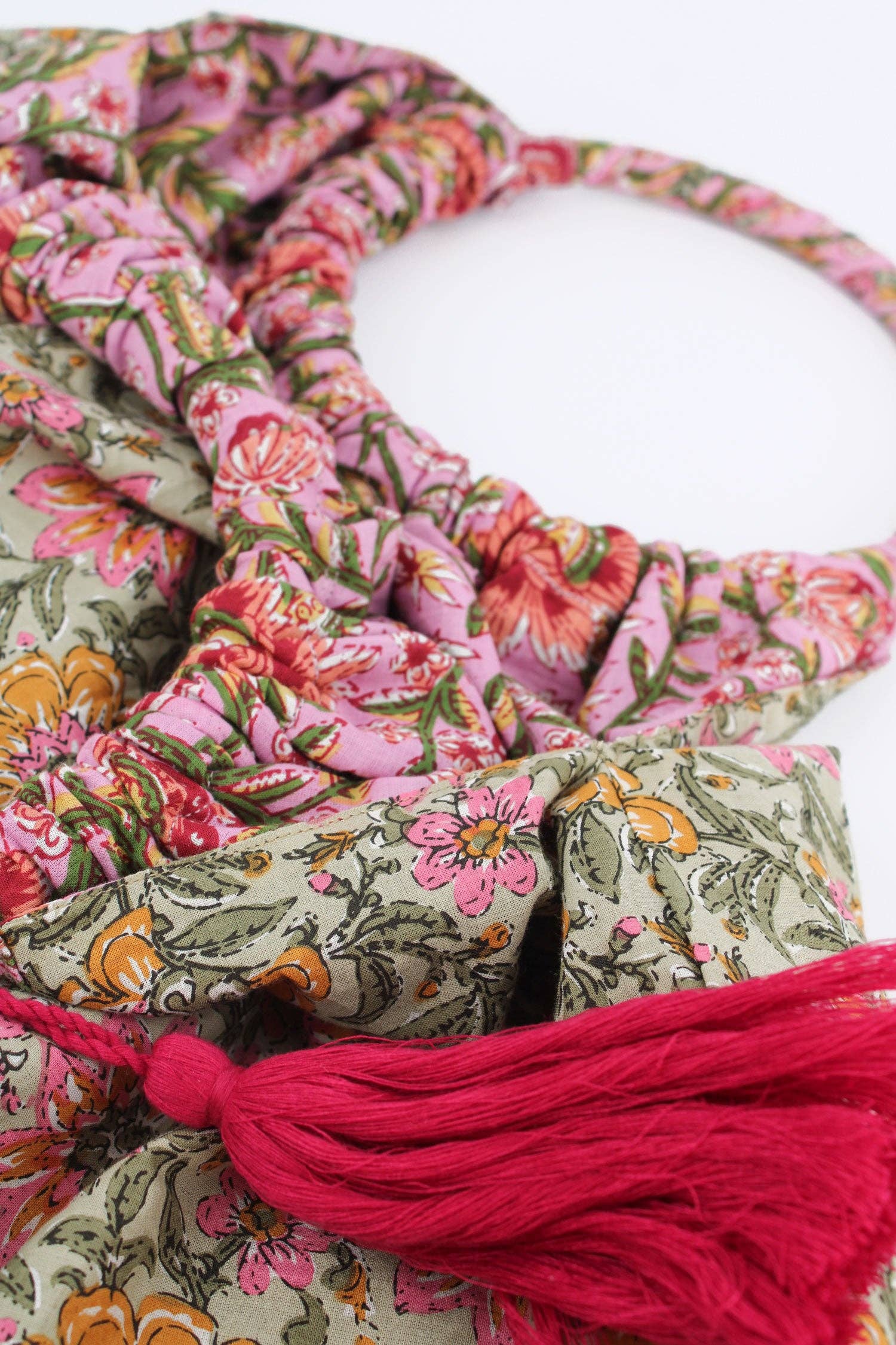 Elevate your style with our Pink and Green Reversible Bag. Made from luxurious cotton, this bag features stunning floral designs that can be flipped for two unique looks. Its circular handles and hand-dyed tassel add a touch of elegance. Indulge in the artistry of talented Indian artisans with the 40cm length and 62cm width of this must-have accessory.